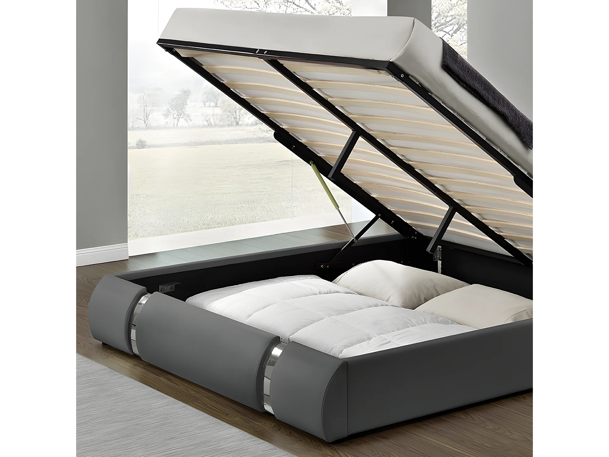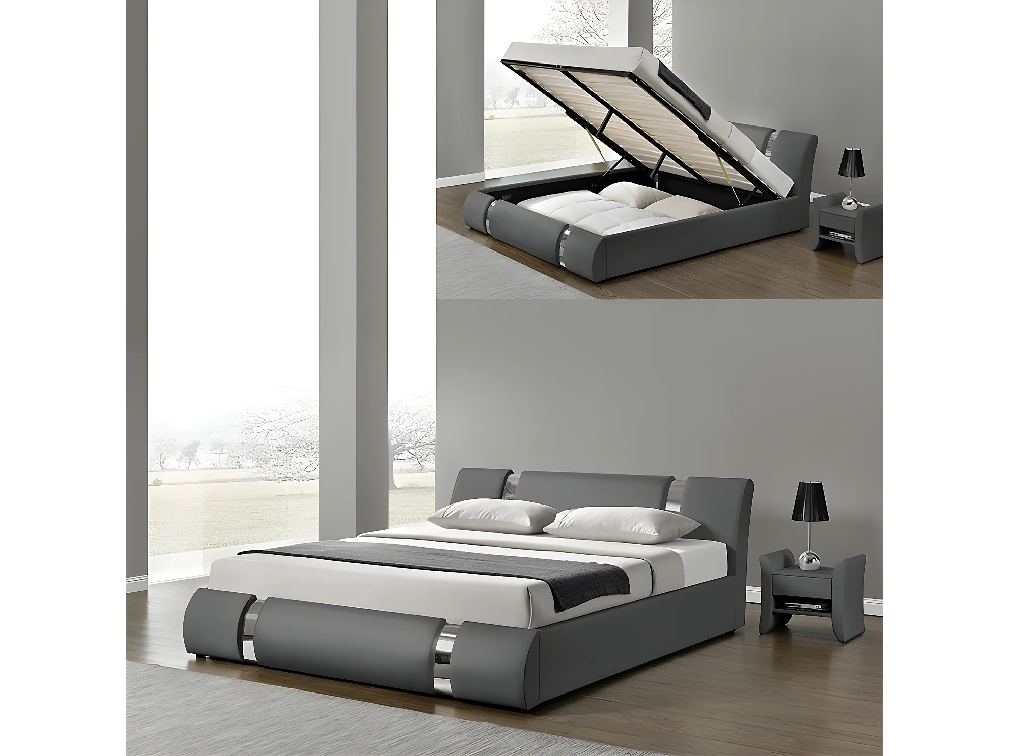 Lit Coffre Sommier Relevable Nova - Couleurs - Gris, Tailles - 180x200