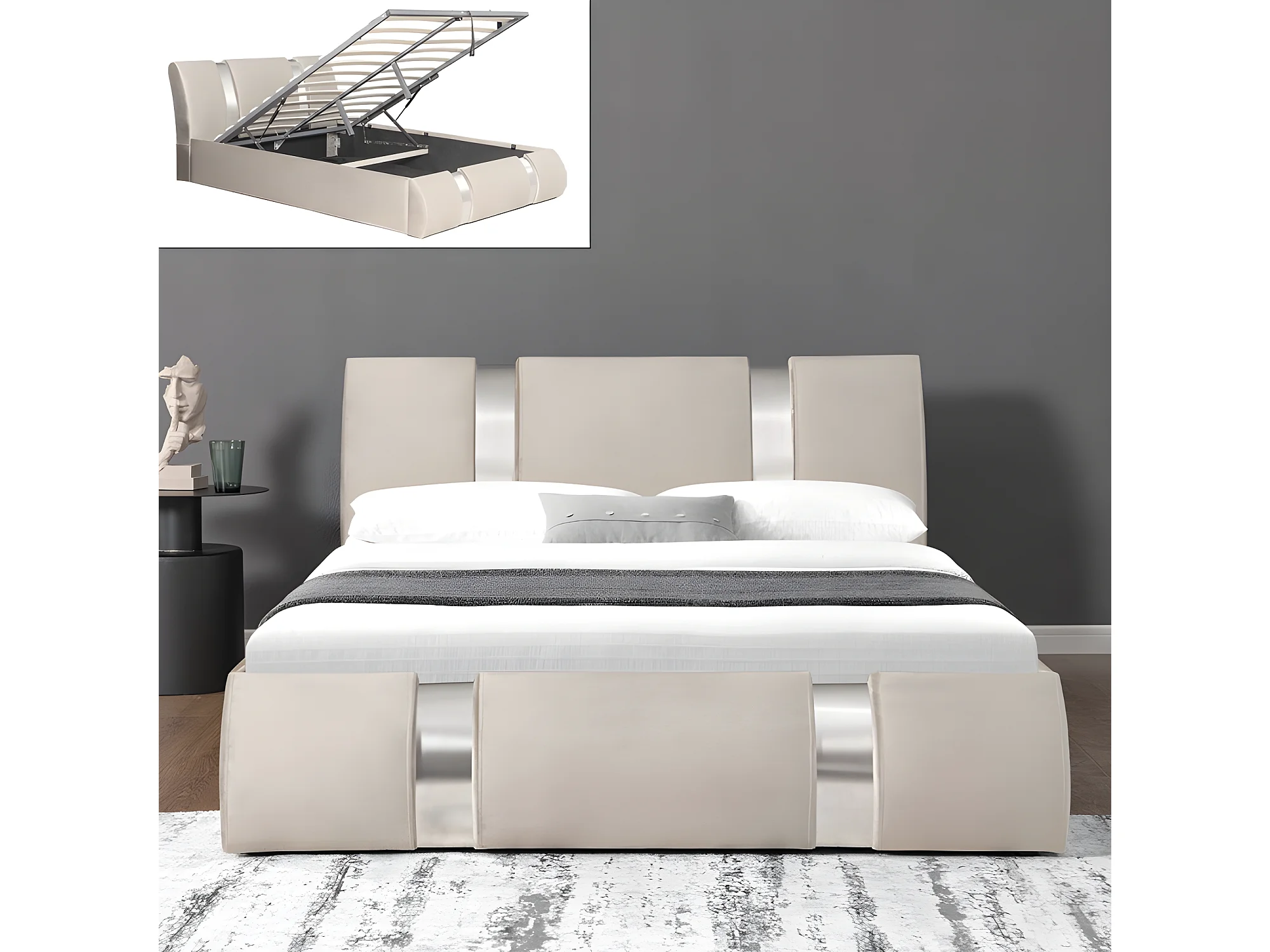 Lit Coffre Sommier Relevable Nova Velours - Couleurs - Velours Taupe, Tailles - 140x190
