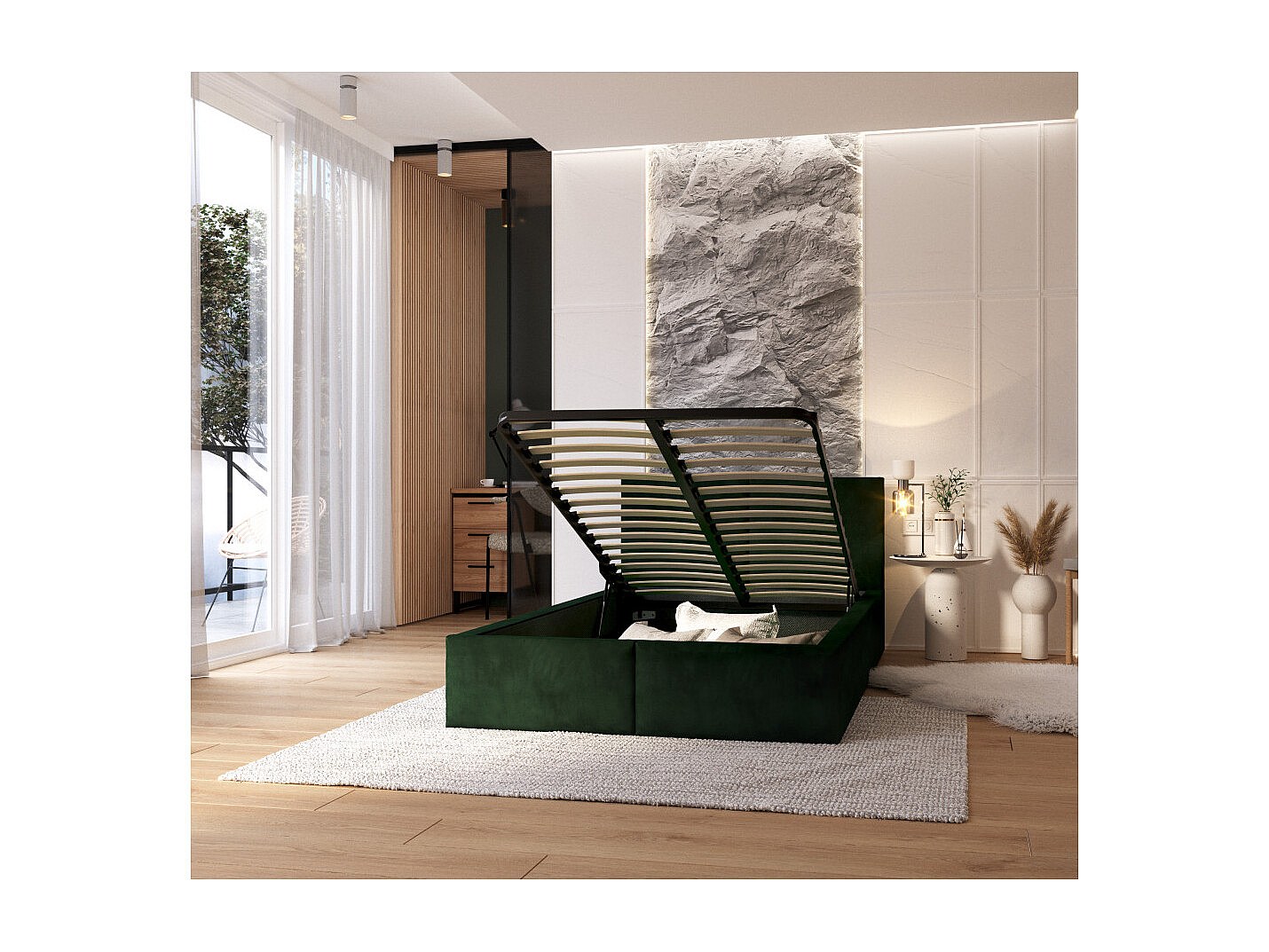 Lit coffre Tesia 120x200 - Sommier inclus Vert sapin