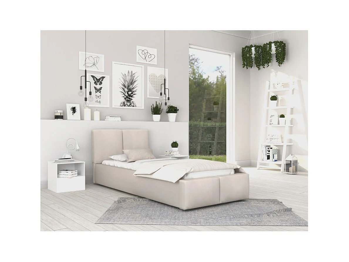Lit coffre Tesia 90x200 - Sommier inclus Crème