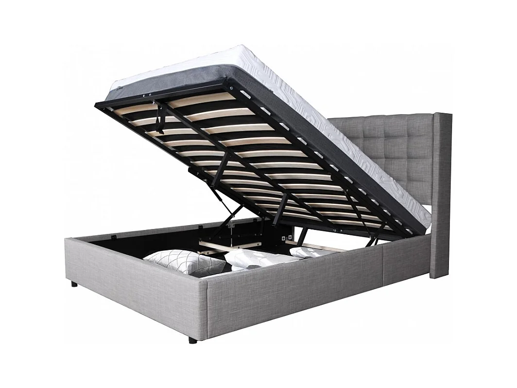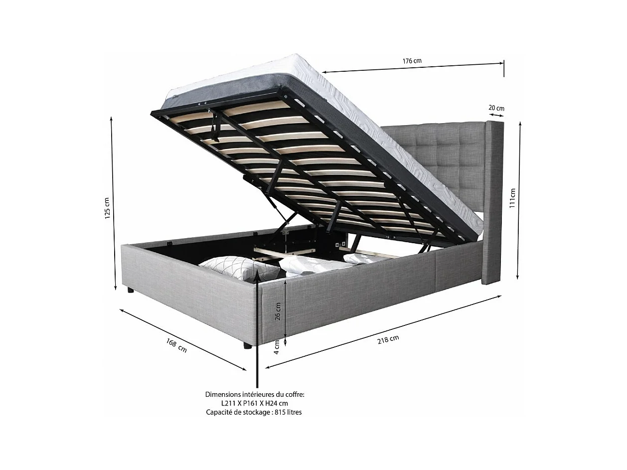 Lit coffre WEMBLEY 160x200 + 1 sommier / Gris clair
