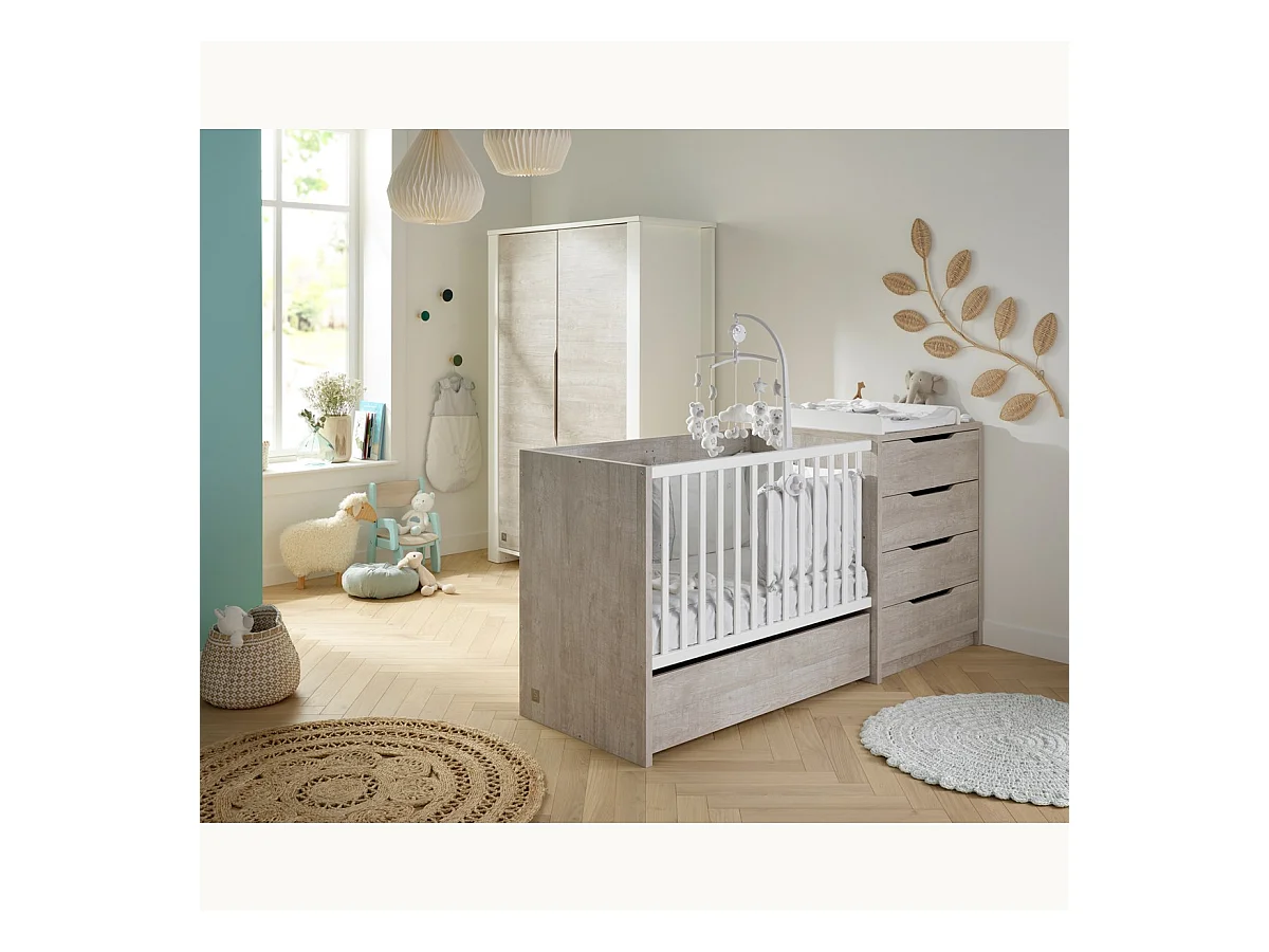 Lit combiné 120x60 évolutif en bois blanc LOFT - Sauthon