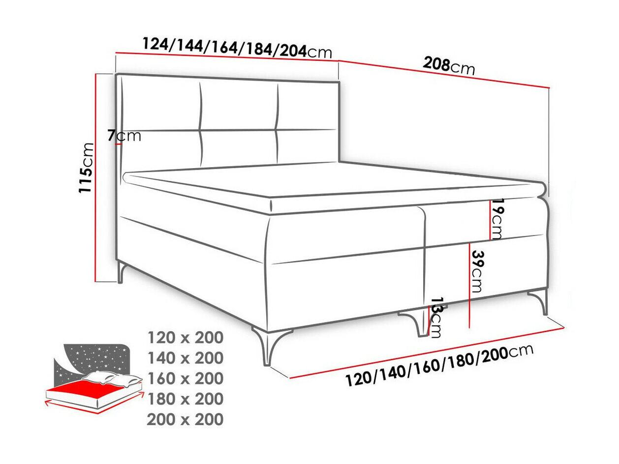 Lit continental Baltimore 133, Continental, Double, Brun clair, 200x200, Tapisserie,