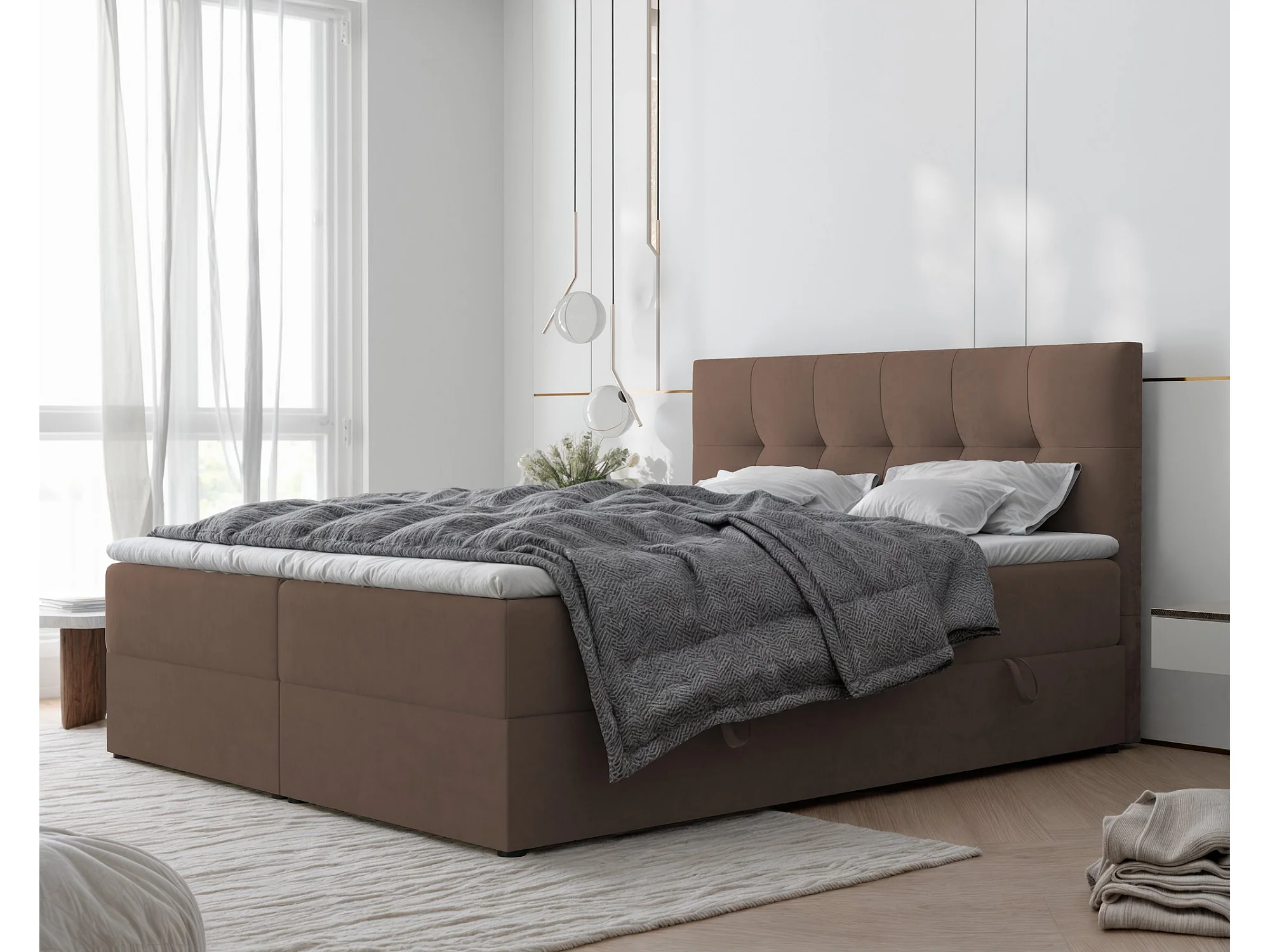 Lit continental rembourré avec surmatelas, marron - 200x200 - RENZO