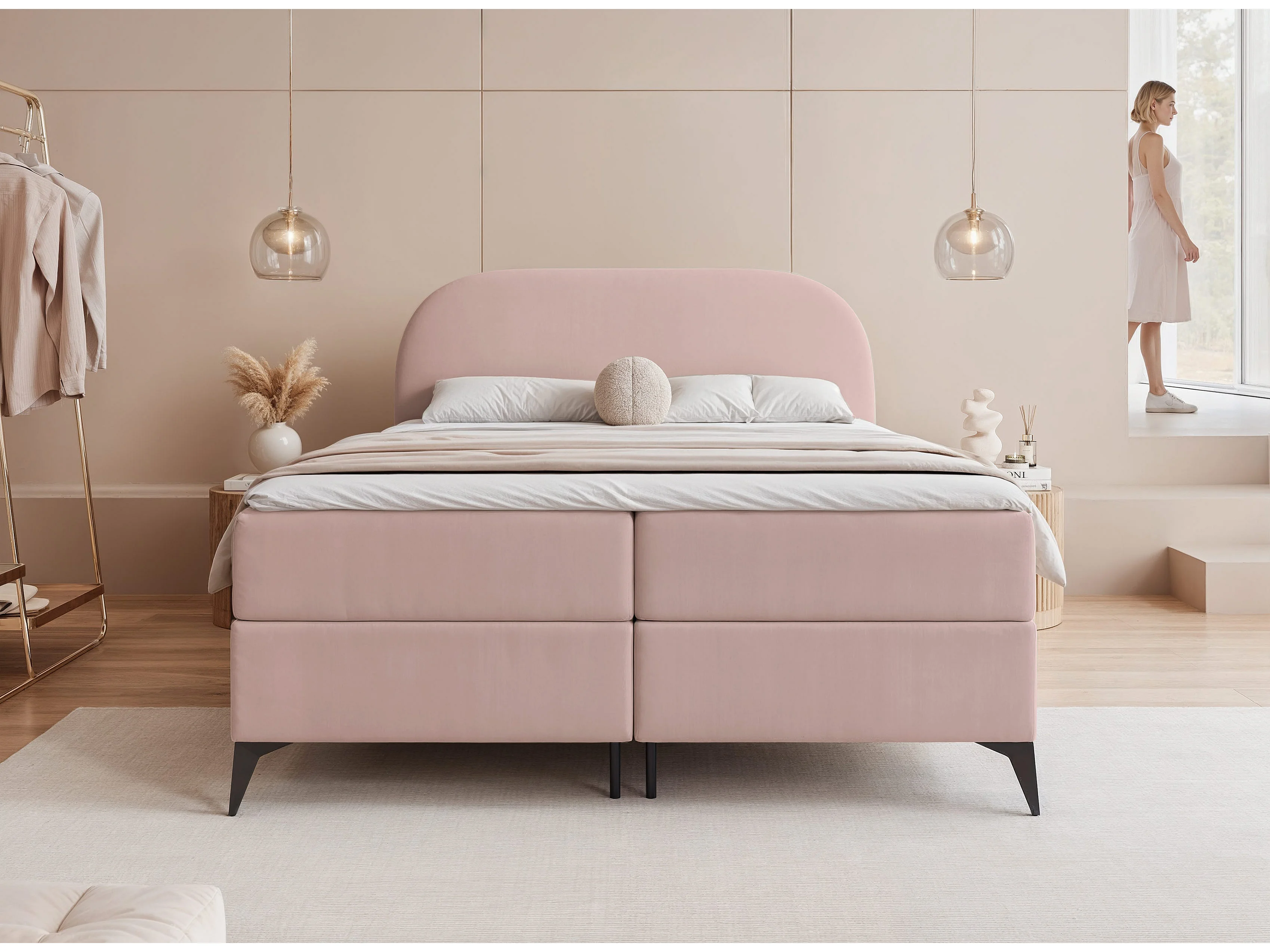 Lit continental rembourré sur pieds avec surmatelas, rose poudré - 140x200 - NOELIA