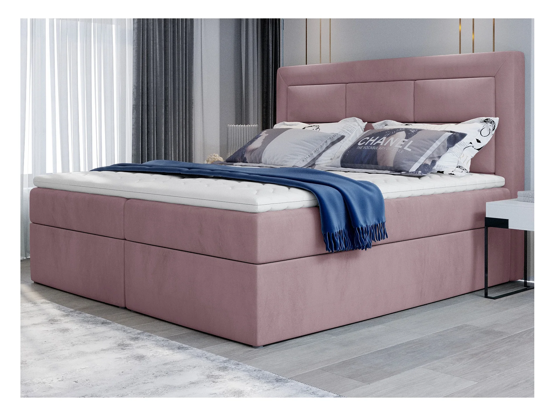 Lit continental velours rose Balore-Couchage 140x200 cm