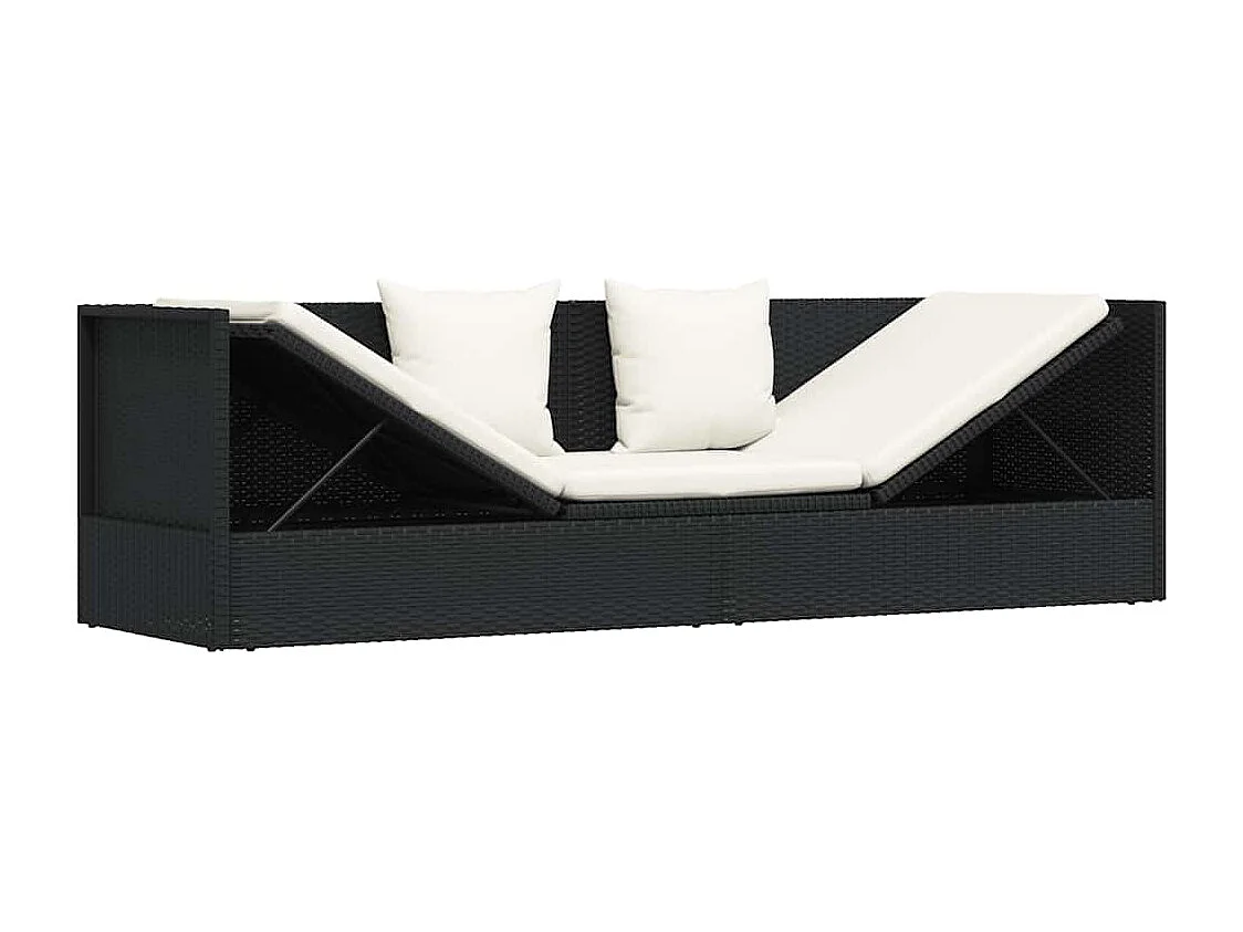 Lit de jardin avec coussin et oreillers Résine tressée Noir