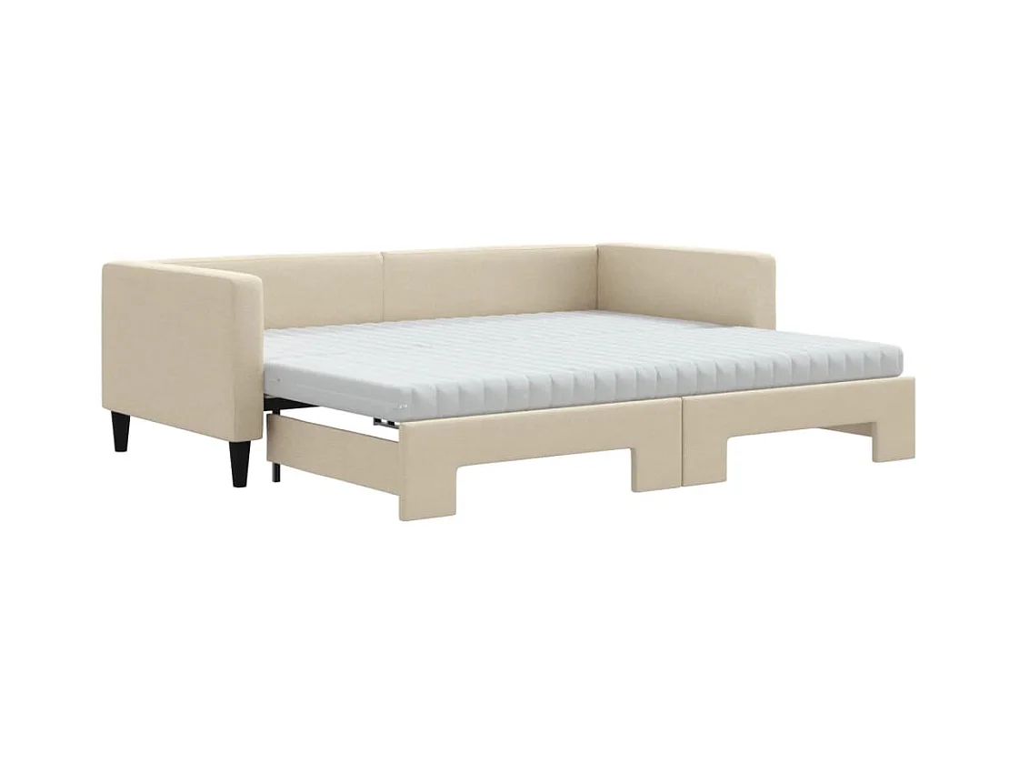 Lit de jour avec gigogne et matelas crème 90x200 cm tissu