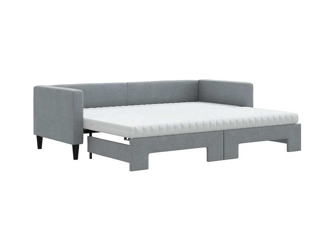 Slaapbank onderschuifbed en matrassen 80x200 cm stof lichtgrijs