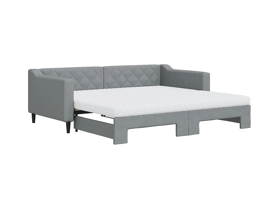 Lit de jour avec gigogne et matelas gris clair 90x190 cm tissu