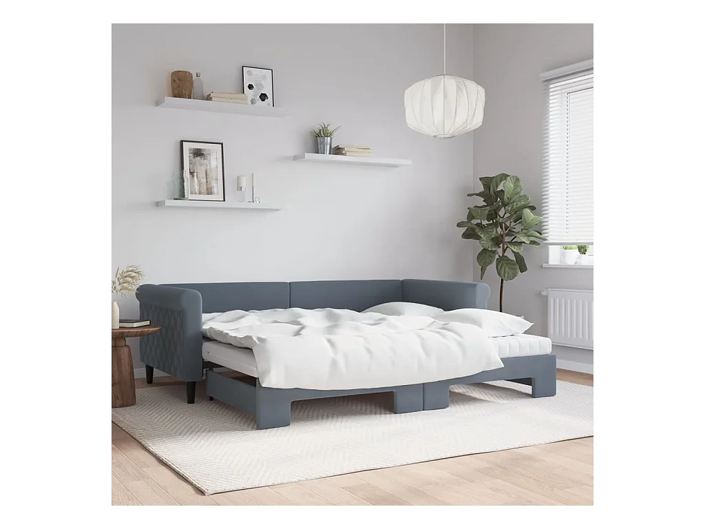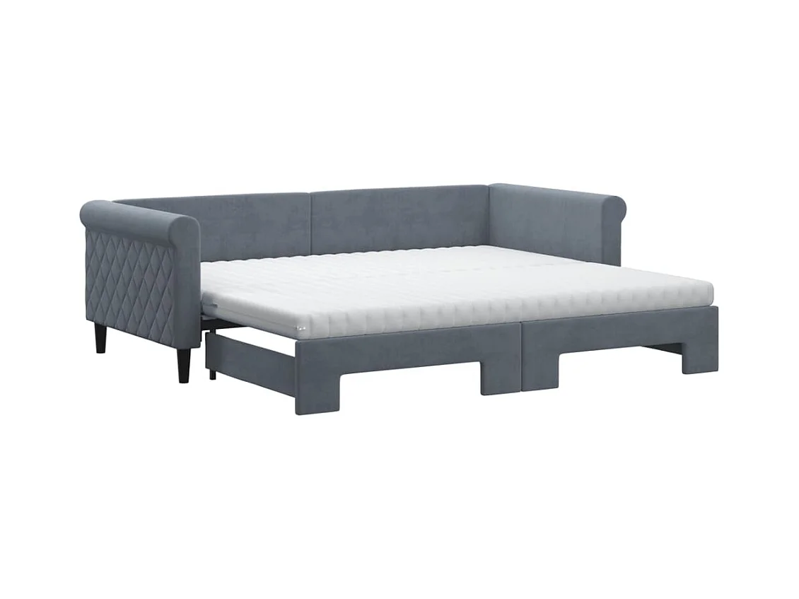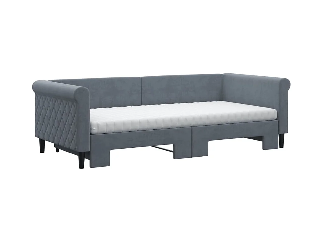 Slaapbank onderschuifbed matrassen 90x200cm fluweel donkergrijs