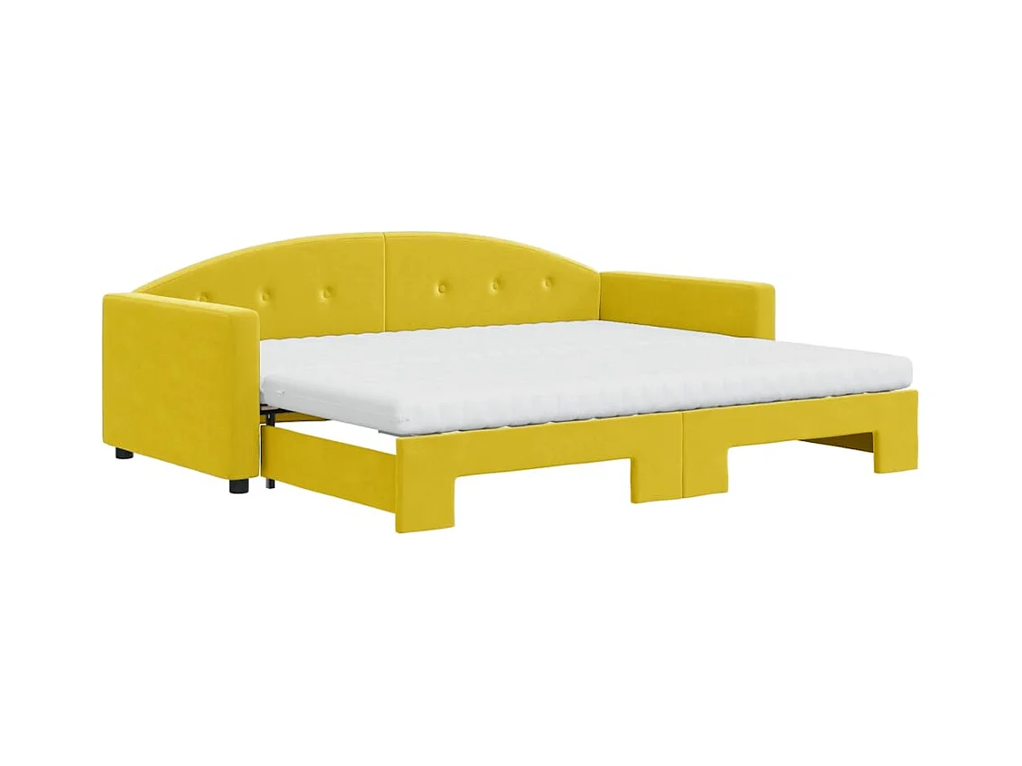 Lit de jour avec gigogne et matelas jaune 90x200 cm velours