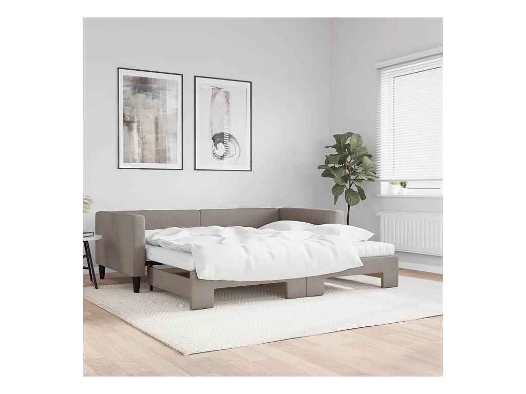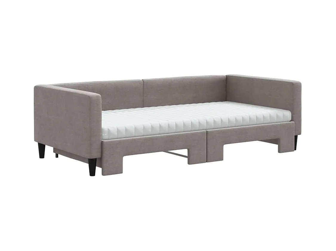 Lit de jour avec gigogne et matelas taupe 100x200 cm tissu