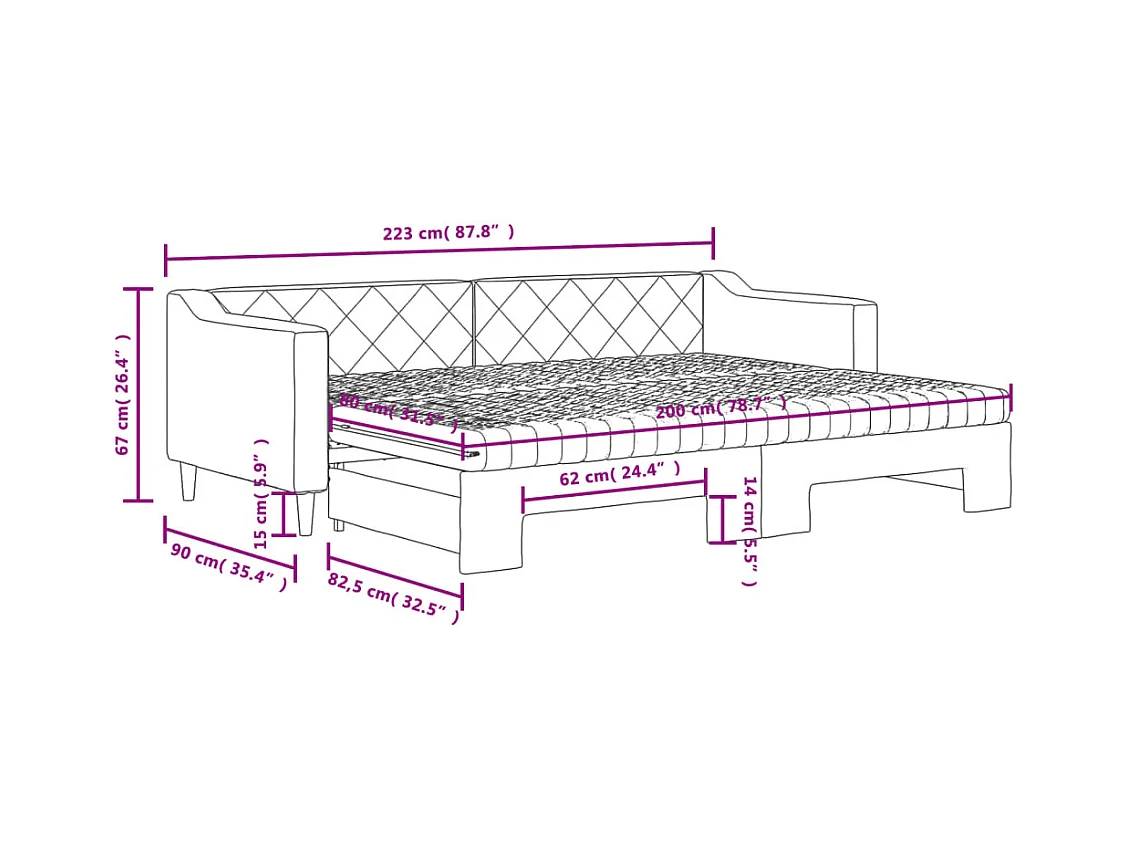 Lit de jour avec gigogne et matelas taupe 80x200 cm tissu