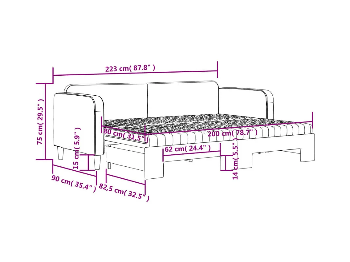 Lit de jour avec gigogne et matelas taupe 80x200 cm tissu