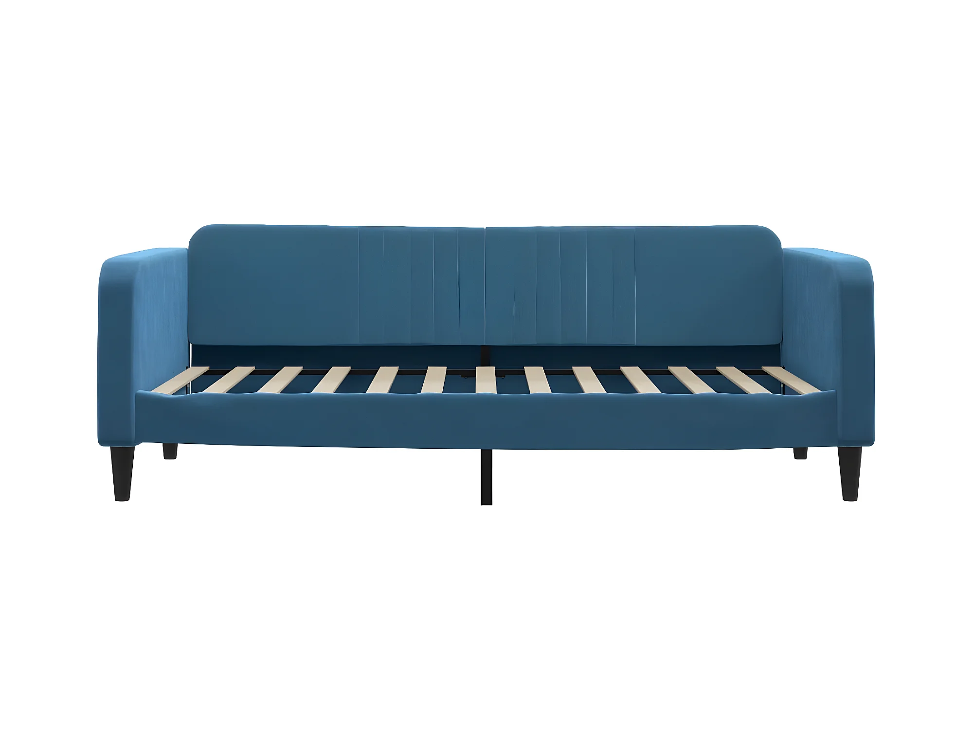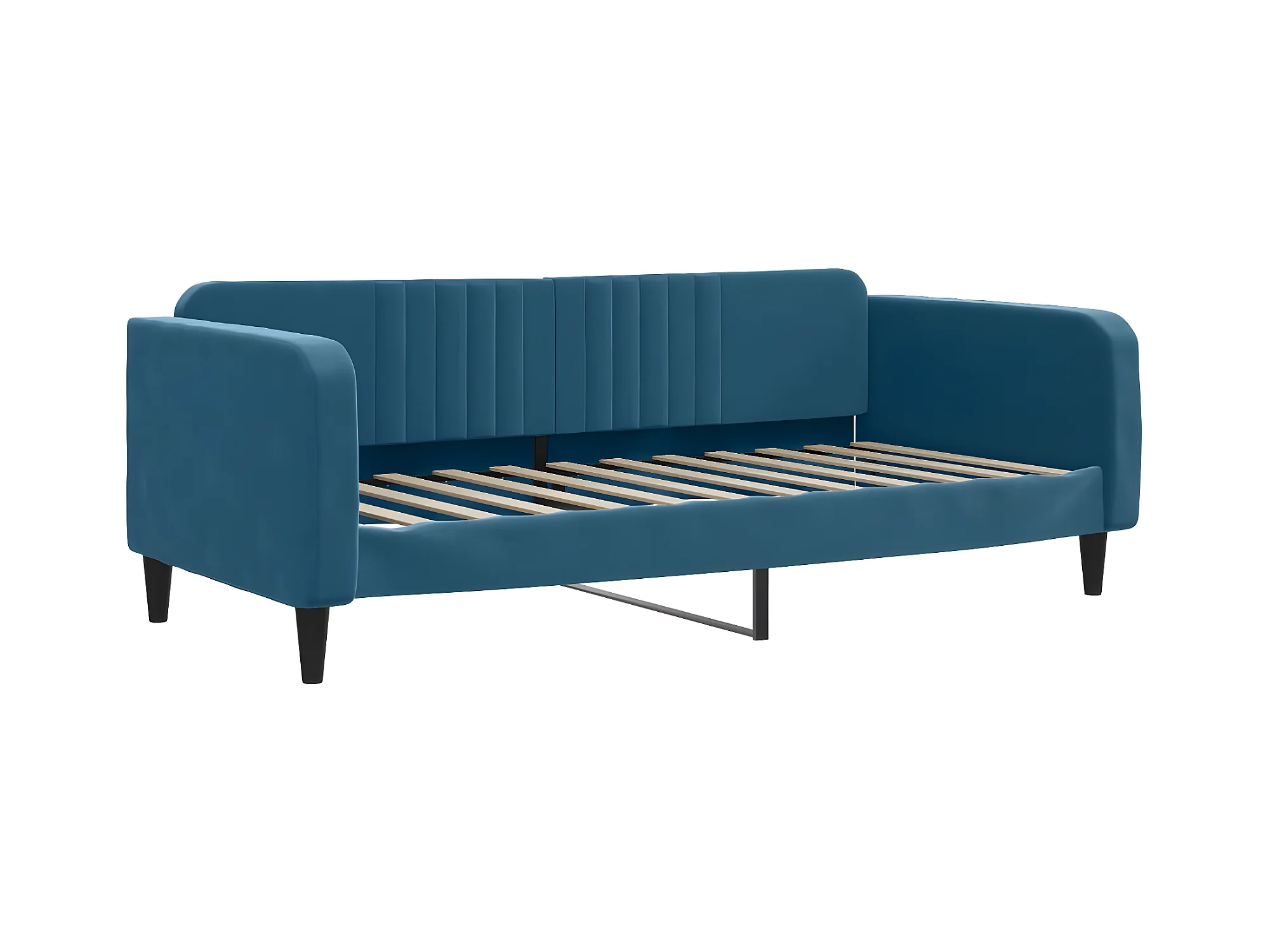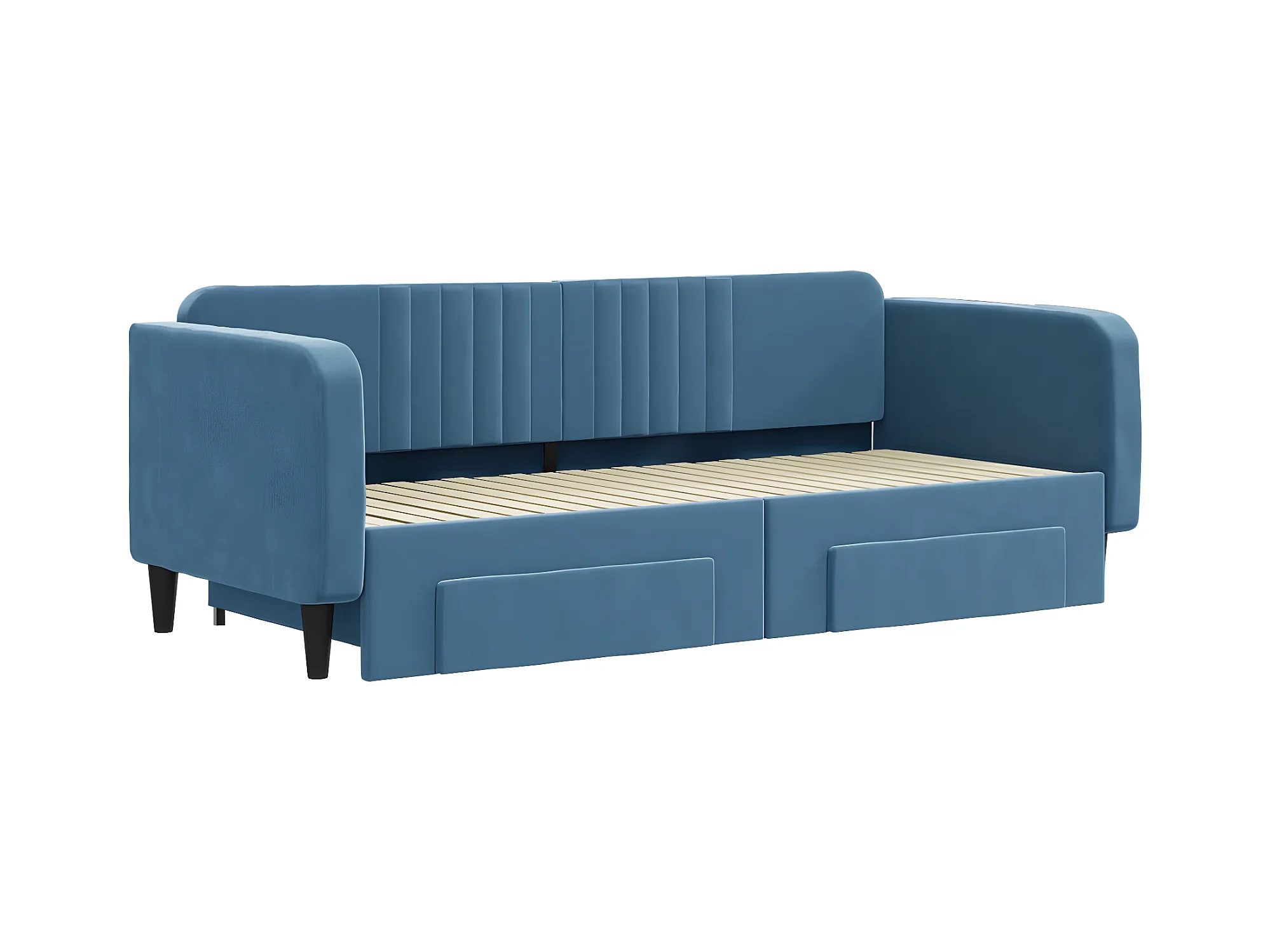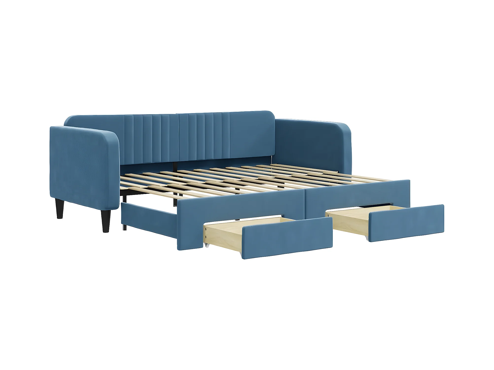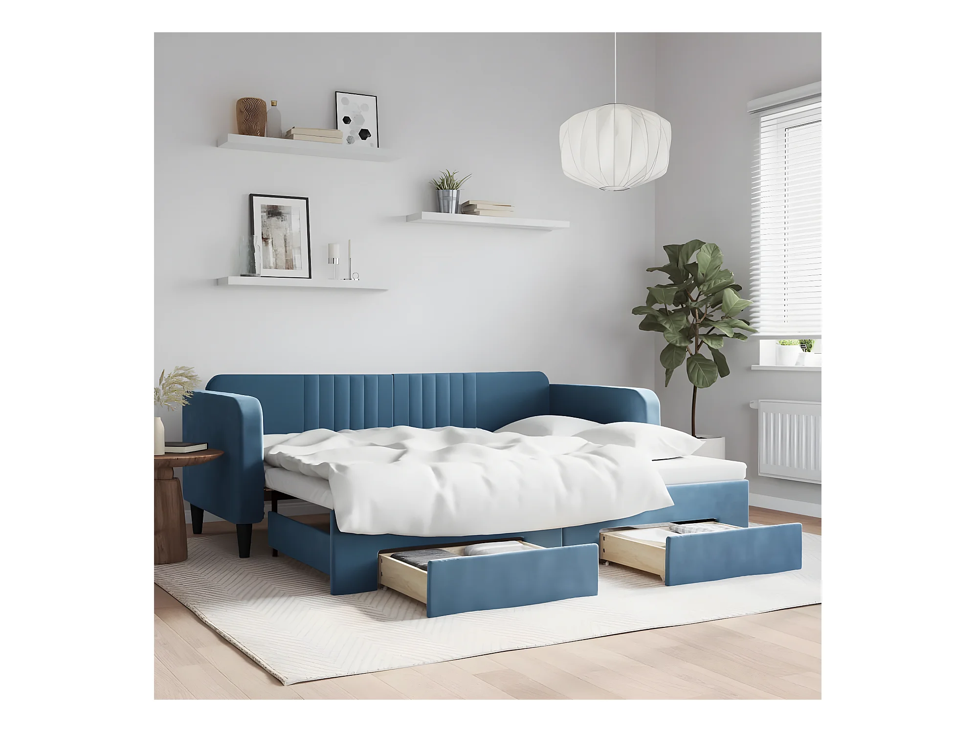 Lit de jour avec gigogne et tiroirs bleu 90x200 cm velours