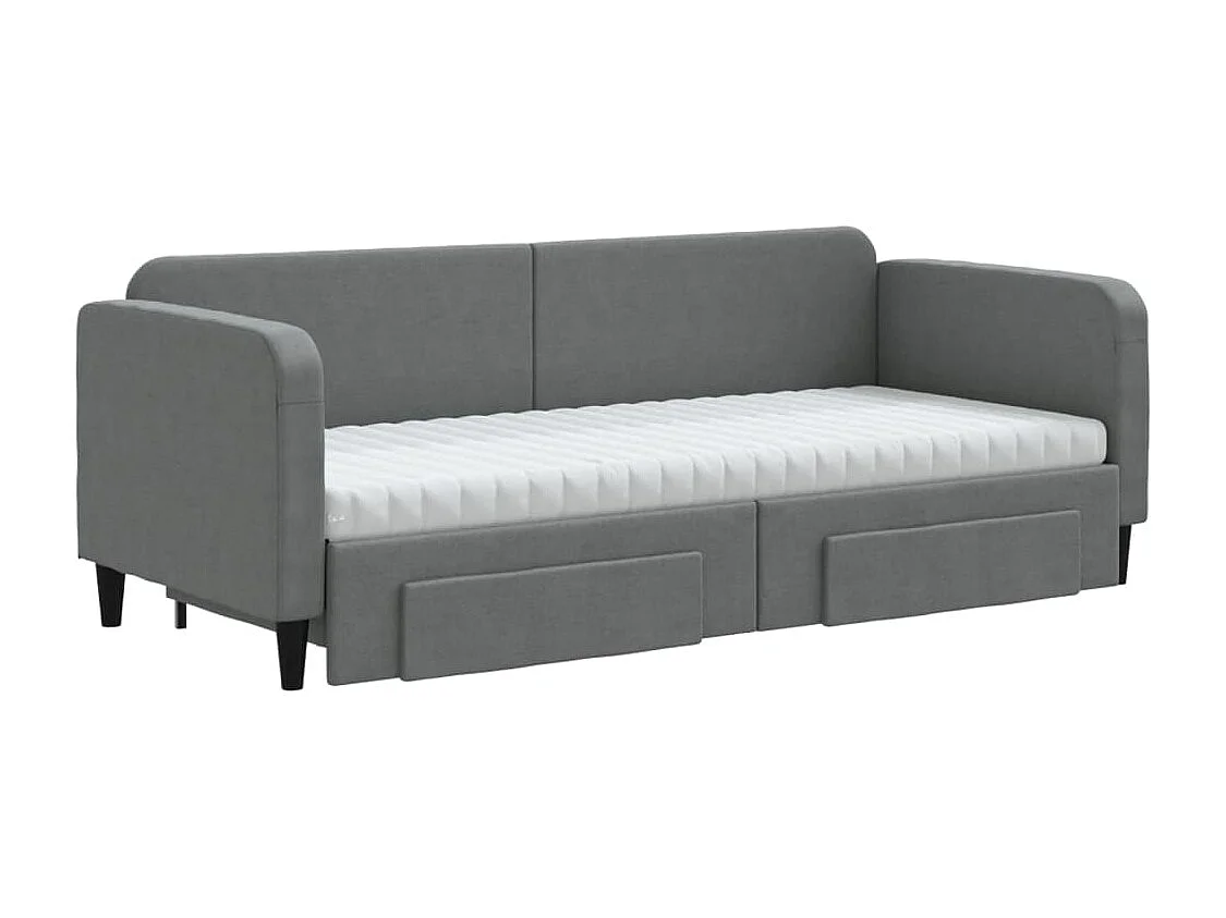 Lit de jour avec gigogne et tiroirs gris foncé 80x200 cm tissu