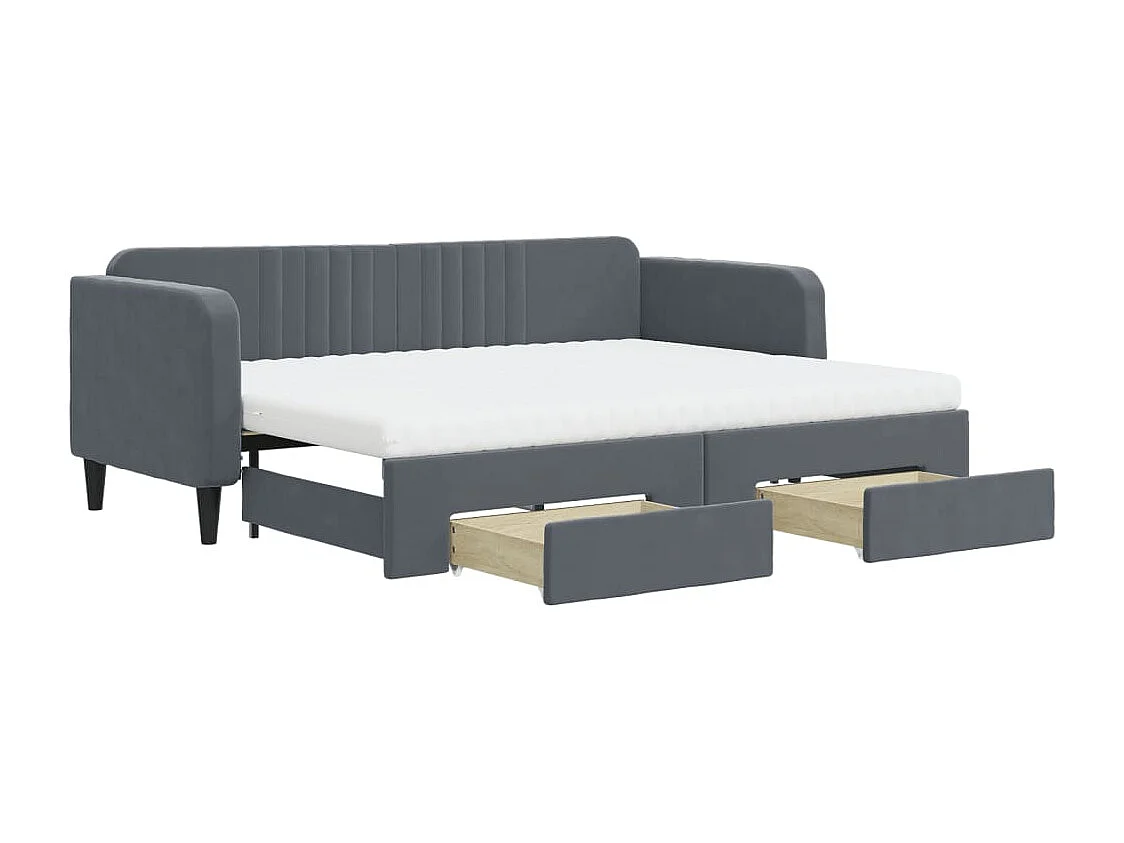 Lit de jour avec gigogne et tiroirs gris foncé 80x200cm velours
