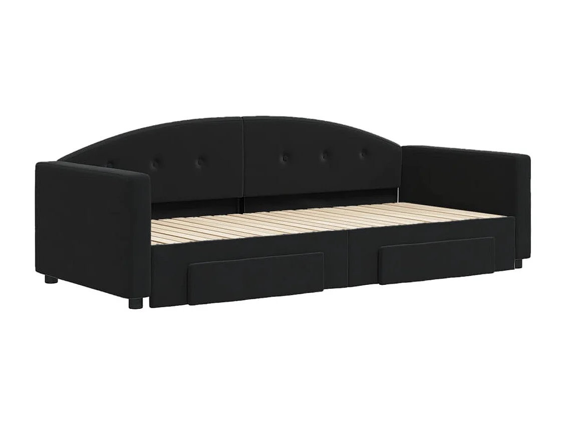 Lit de jour avec gigogne et tiroirs noir 90x200 cm velours