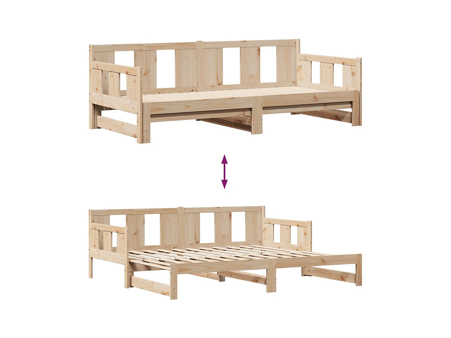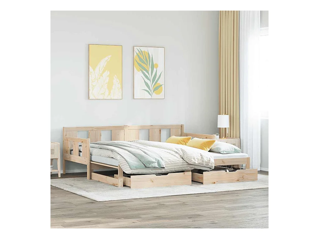 Lit de jour avec gigogne et tiroirs sans matelas 80x200 cm