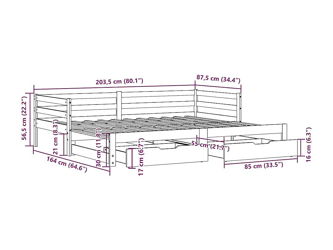 Lit de jour avec gigogne et tiroirs sans matelas 80x200 cm