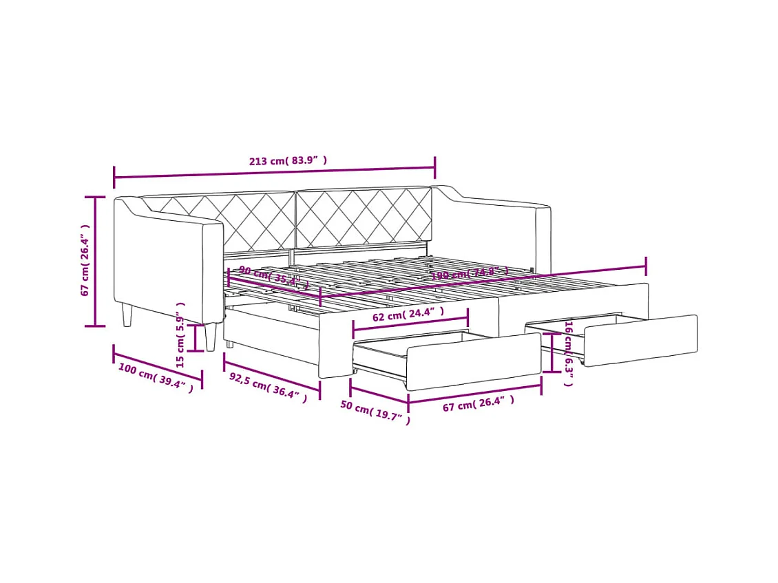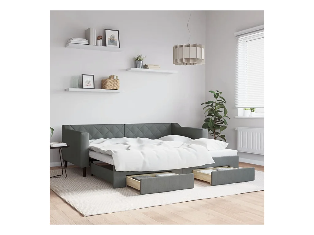 Lit de jour avec gigogne et tiroirs sans matelas 90x190 cm