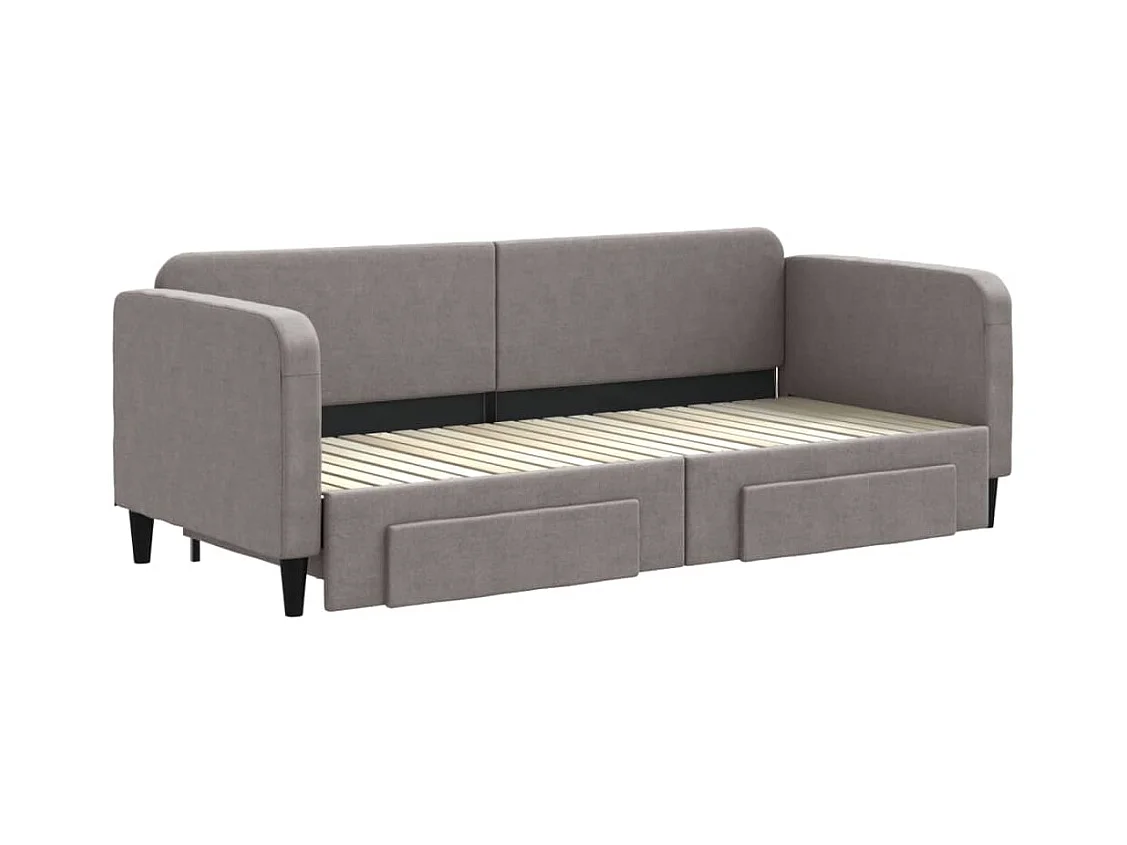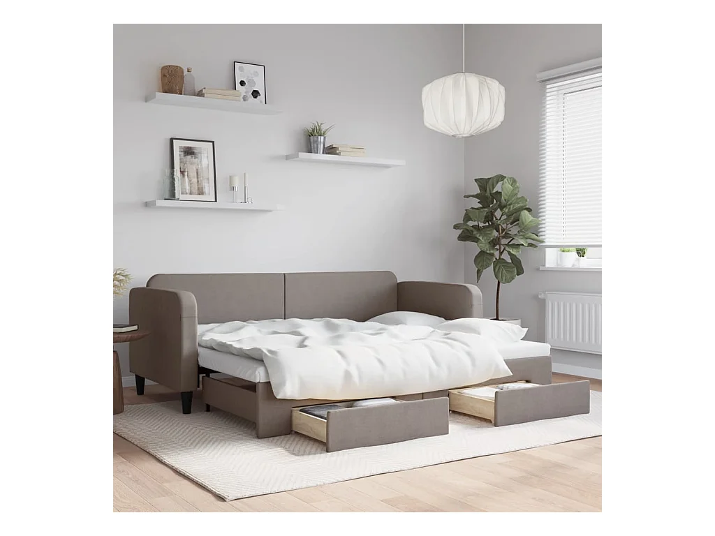 Lit de jour avec gigogne et tiroirs taupe 80x200 cm tissu