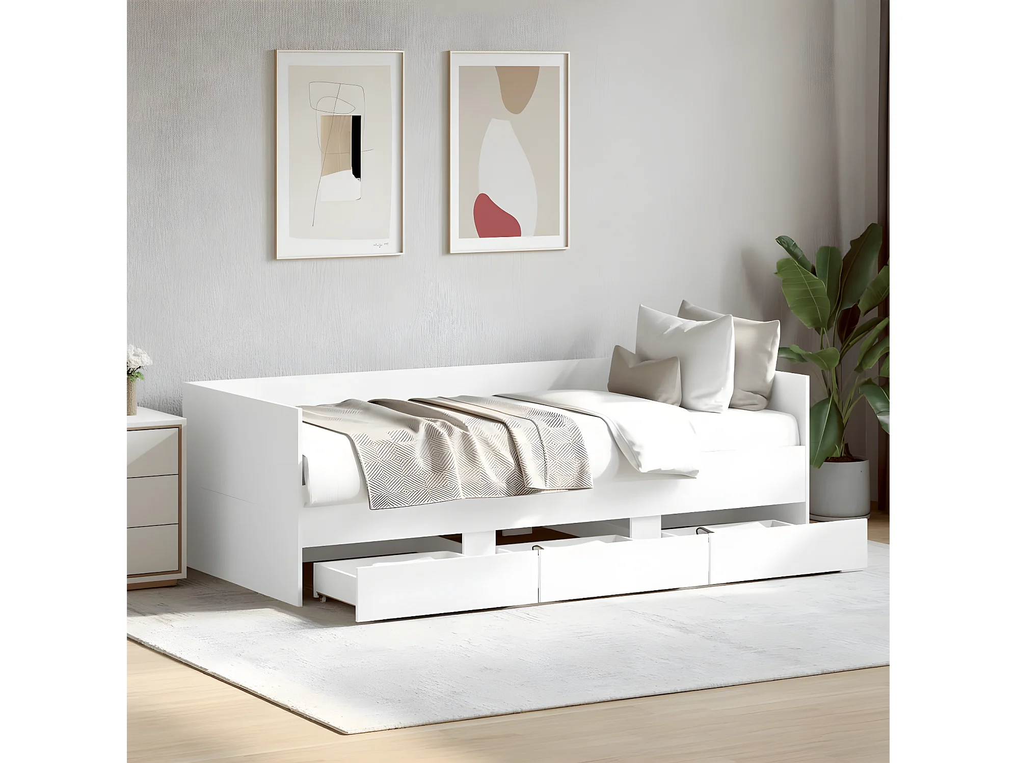 Lit de jour avec tiroirs blanc 100x200 cm bois d'ingénierie