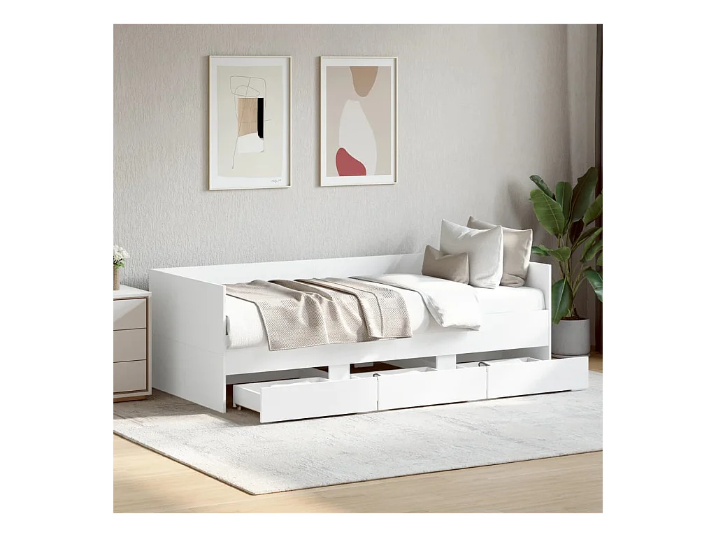 Lit de jour avec tiroirs blanc 90x190 cm bois d'ingénierie FR98417