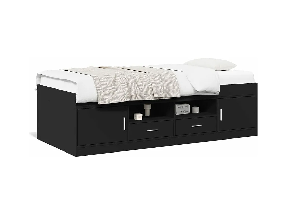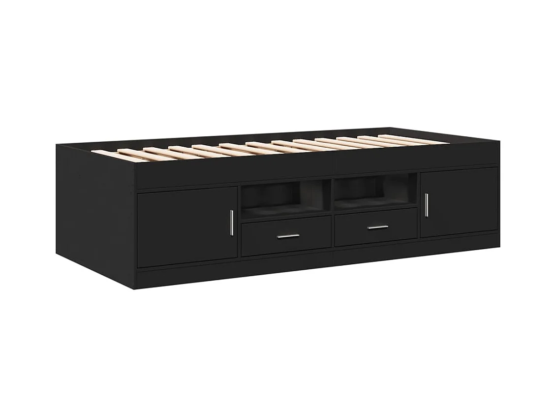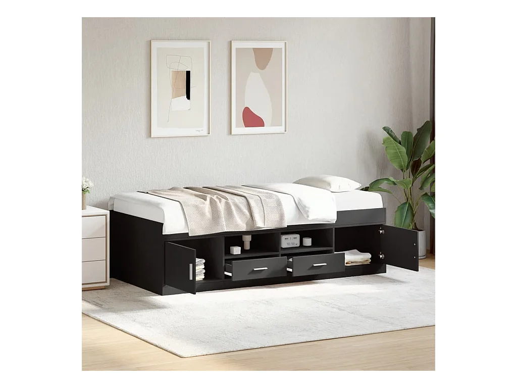 Lit de jour avec tiroirs noir 100x200 cm bois d'ingénierie FR11710