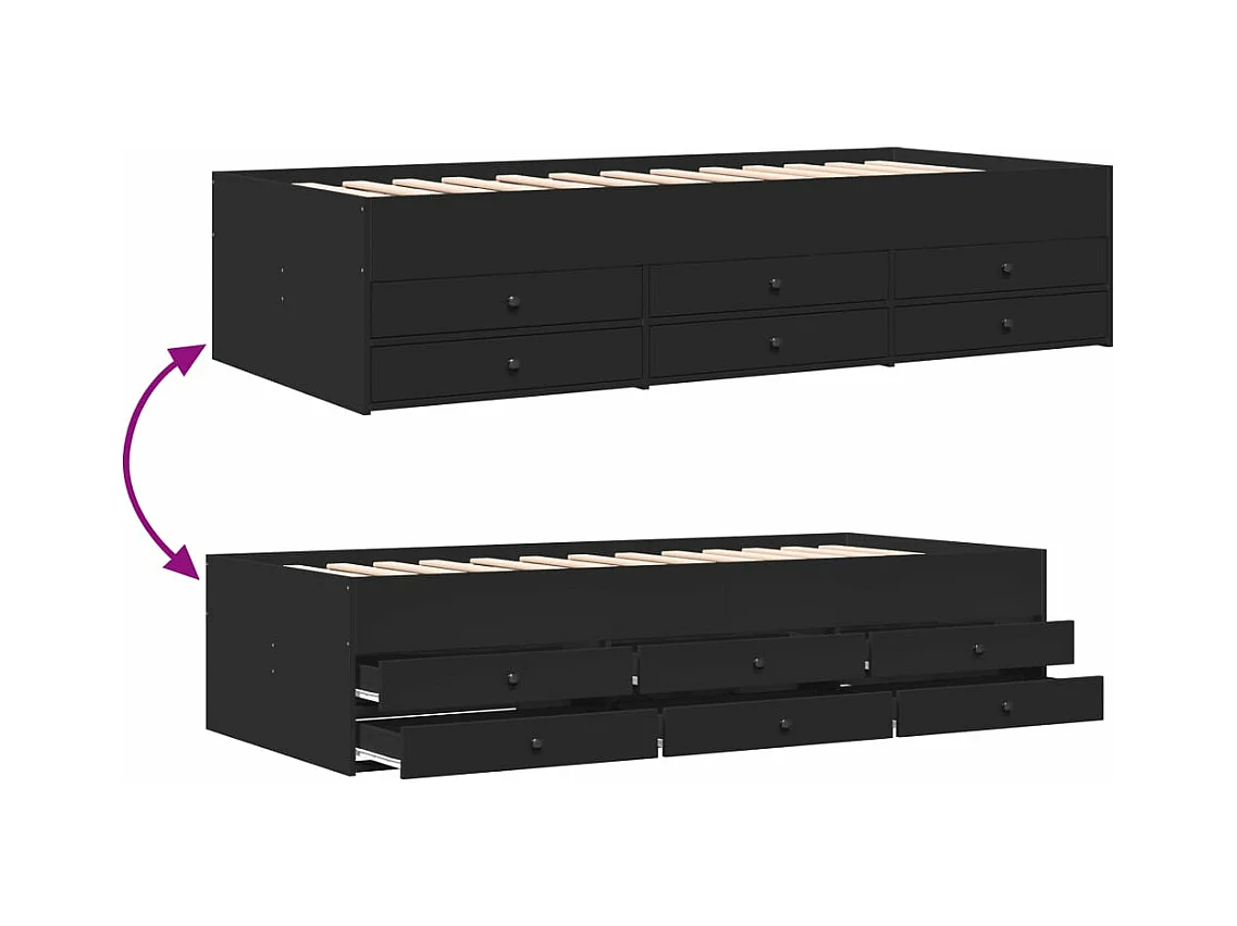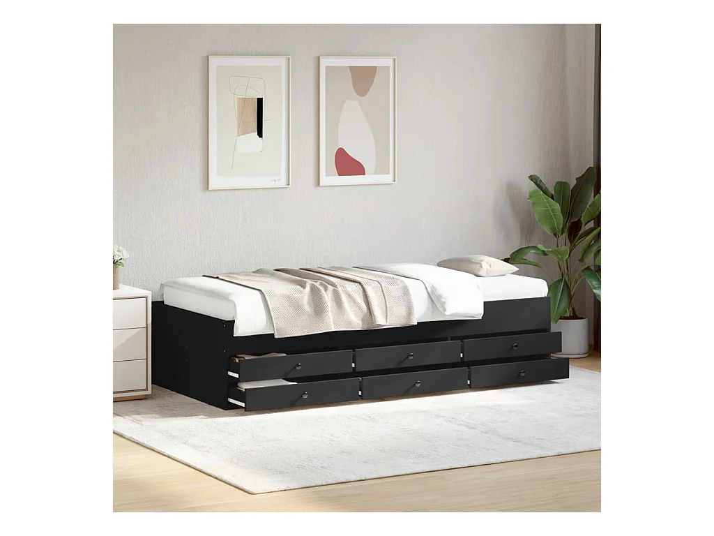 Lit de jour avec tiroirs noir 90x190 bois d'ingénierie