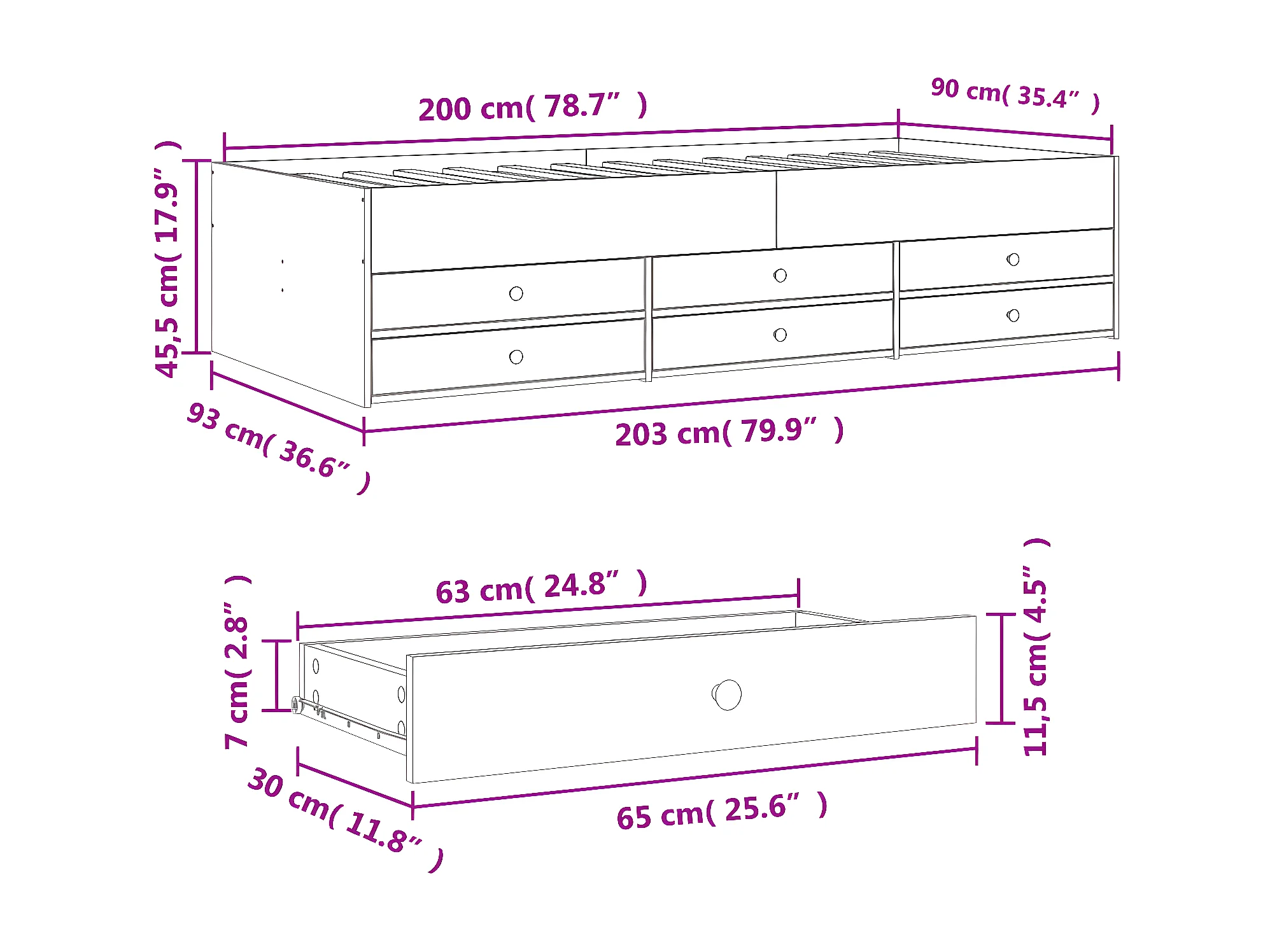 Lit de jour avec tiroirs noir 90x200 cm bois d'ingénierie
