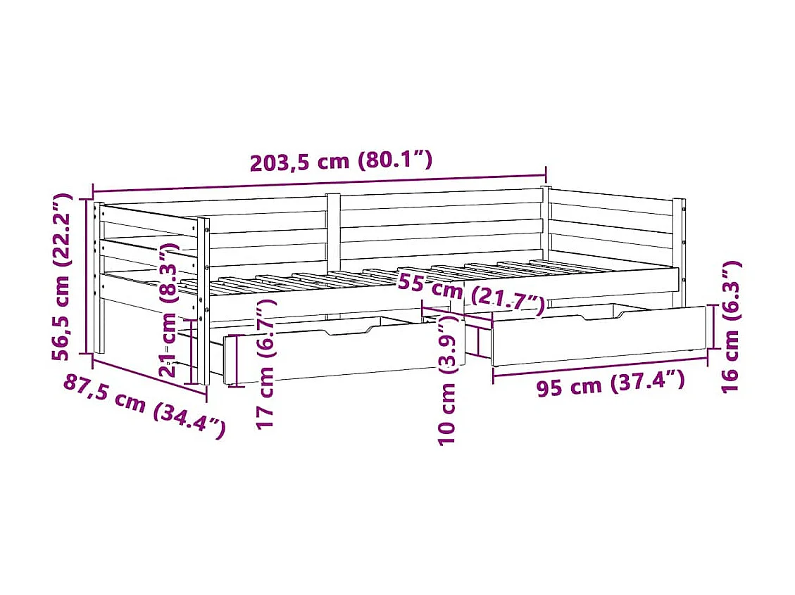 Lit de jour avec tiroirs sans matelas 80x200 cm bois massif