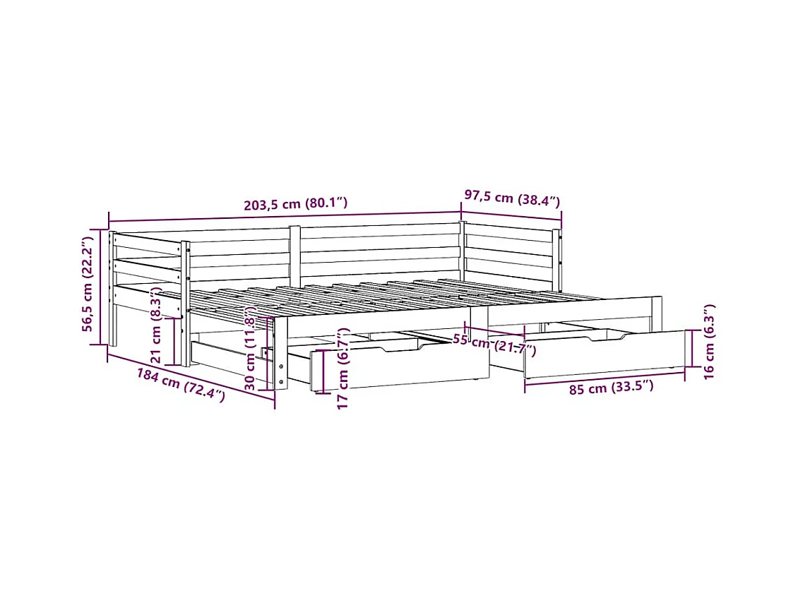Lit de jour avec tiroirs sans matelas 90x200 cm bois massif