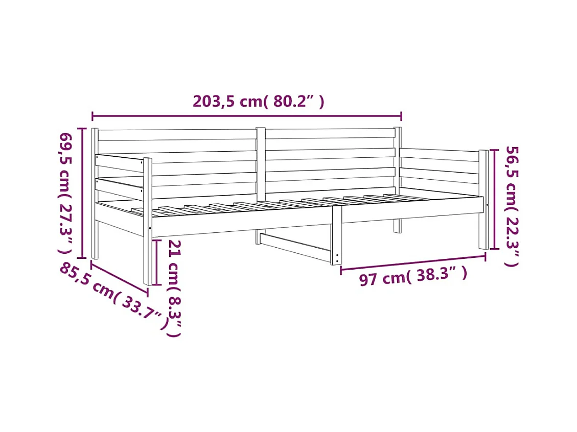 Lit de jour Blanc 80x200 cm Bois de pin massif