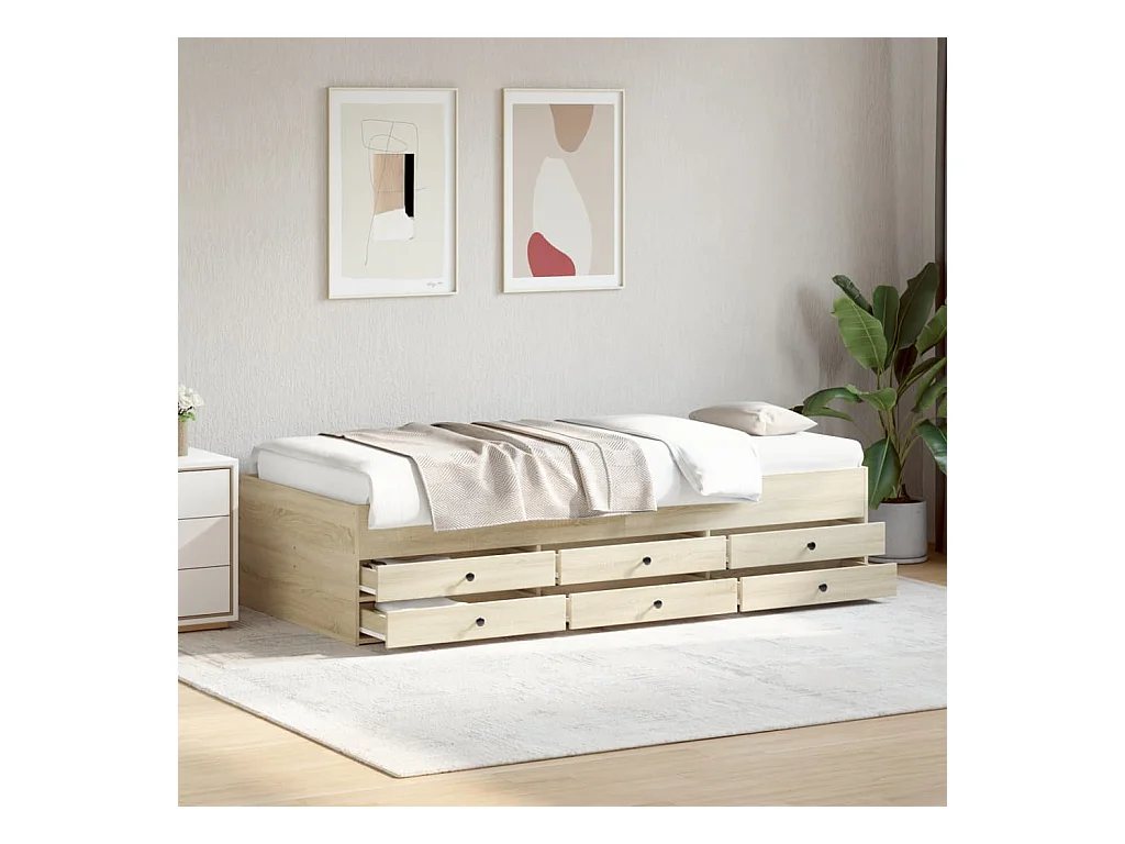Lit de jour et tiroirs chêne sonoma 90x190 bois d'ingénierie
