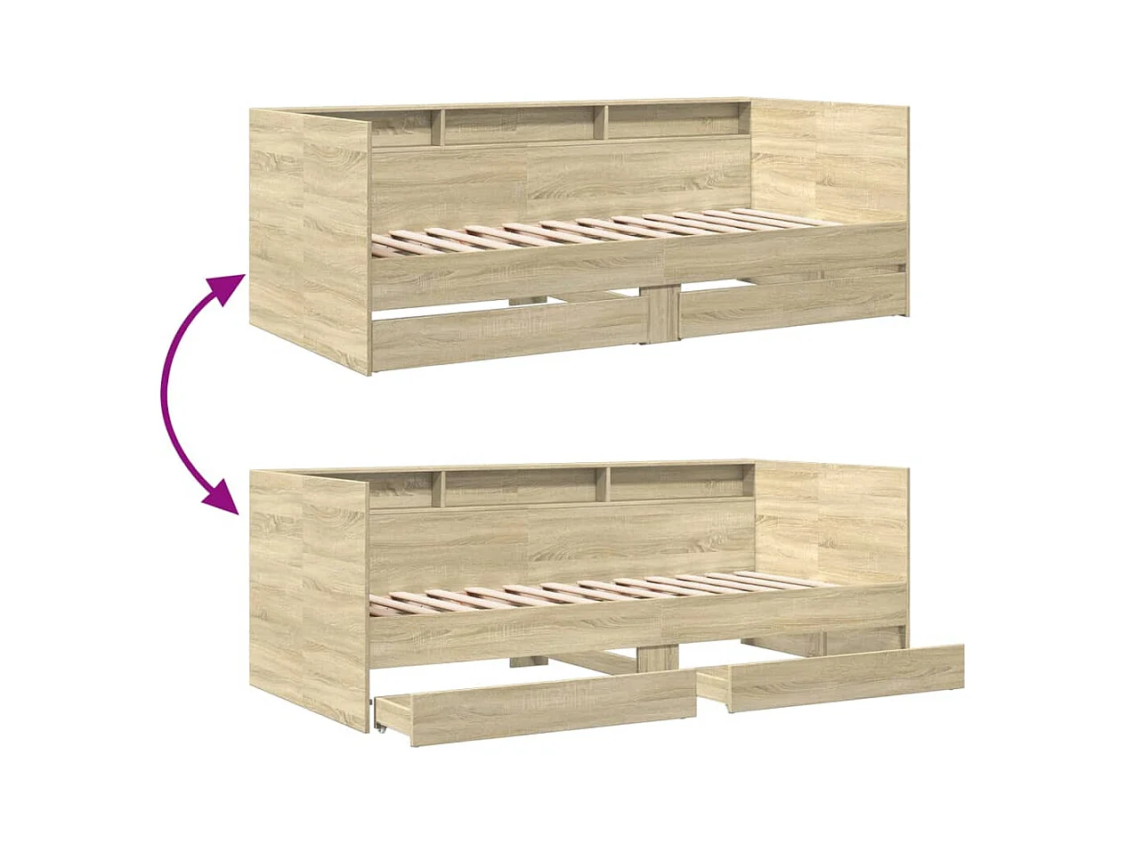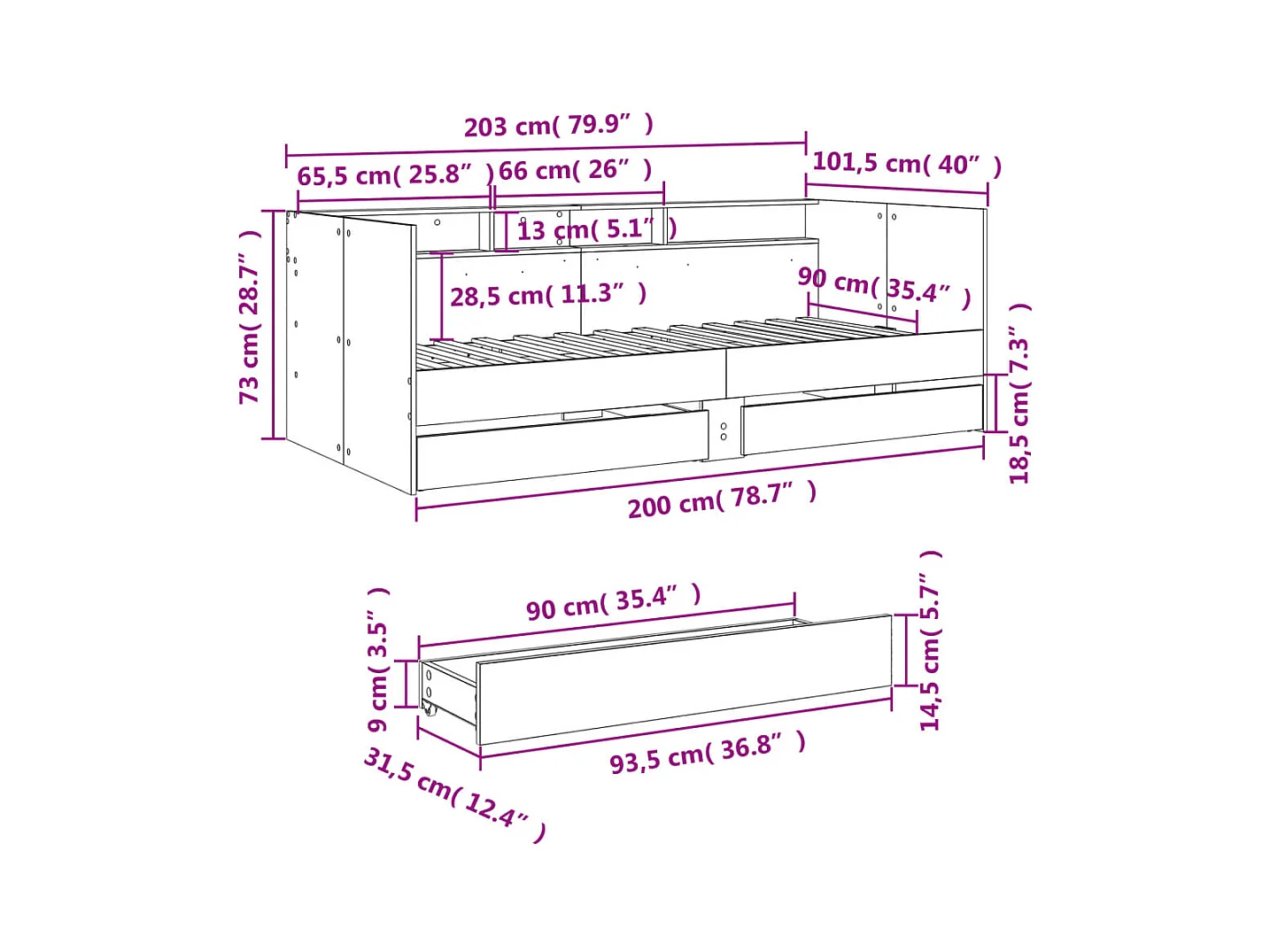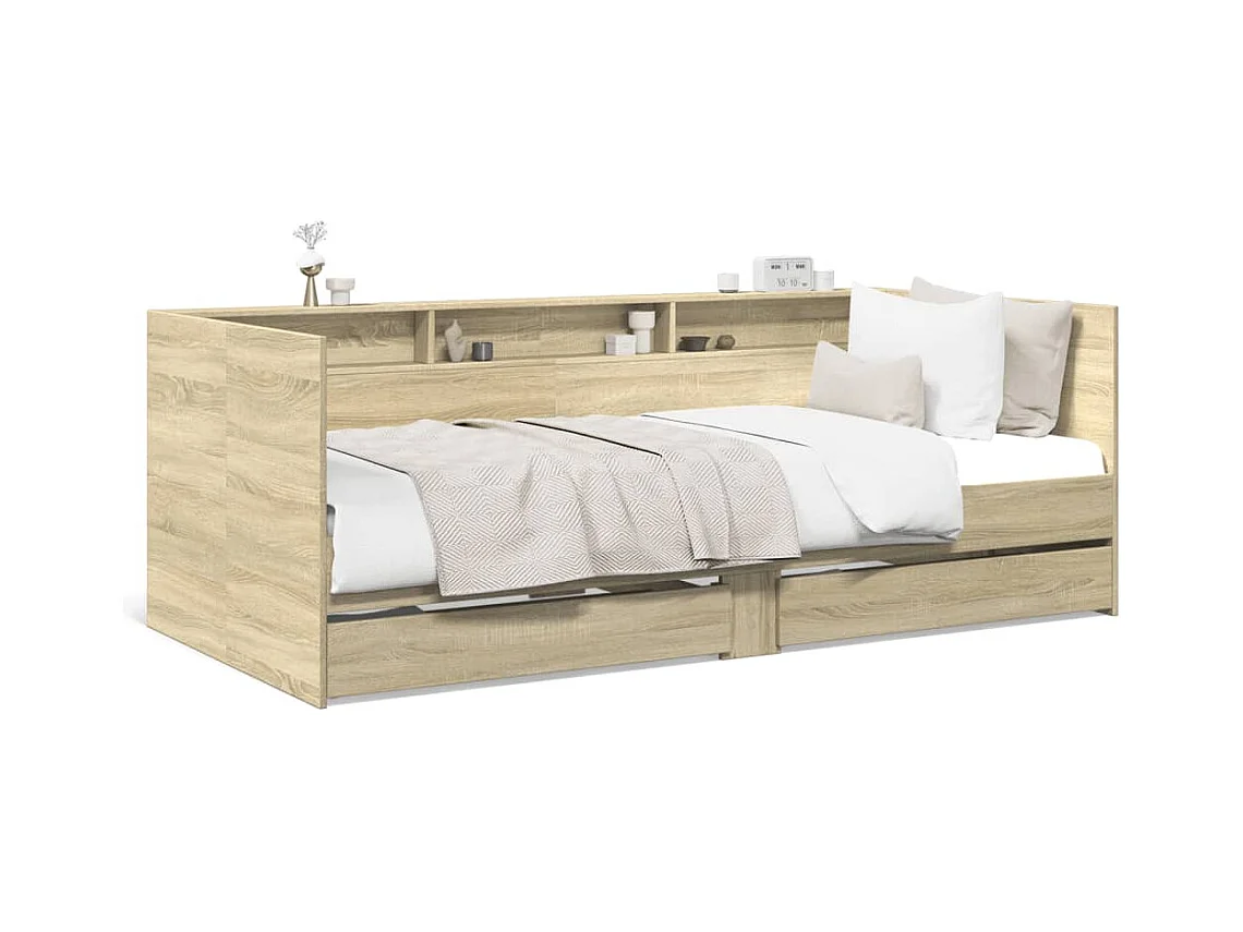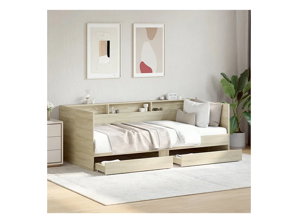 Lit de jour et tiroirs chêne sonoma 90x200 bois d'ingénierie