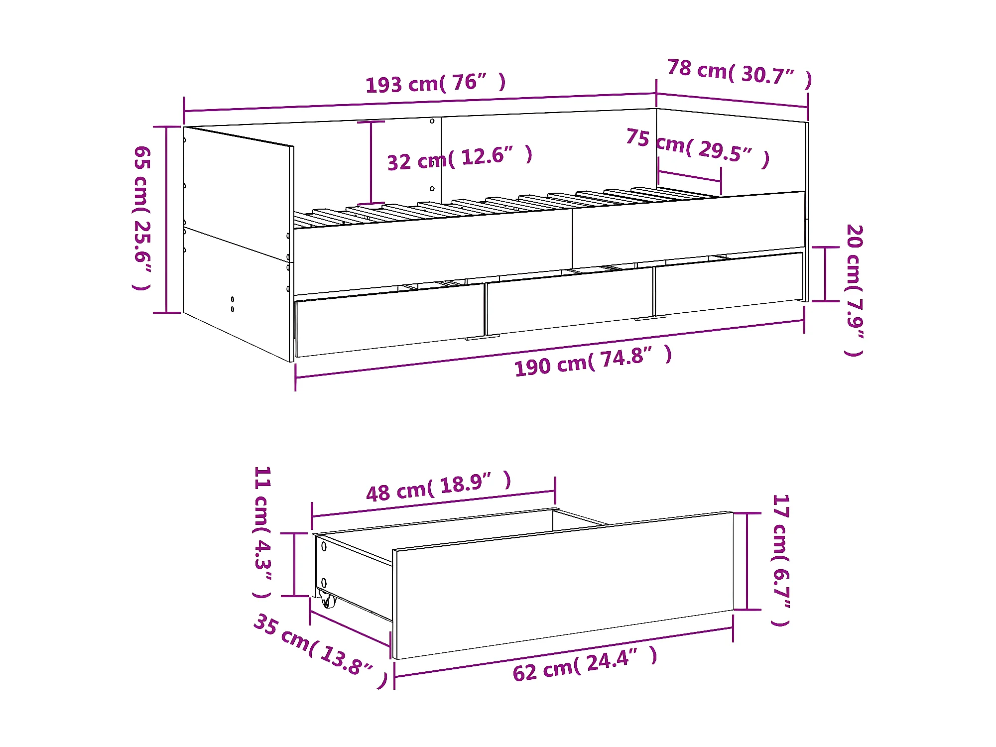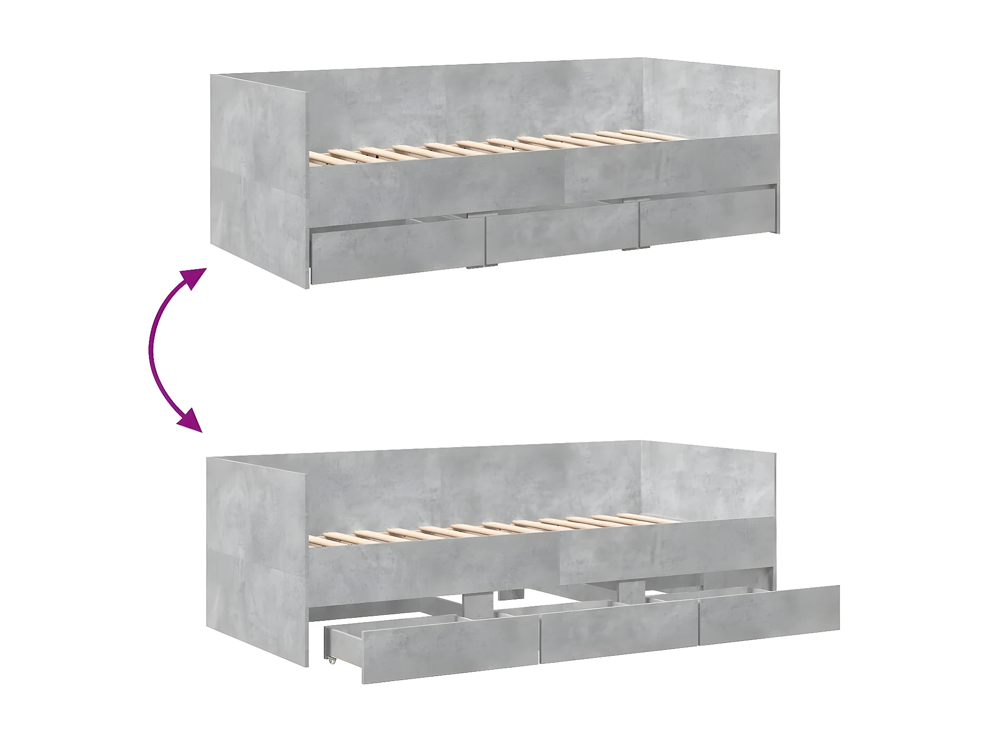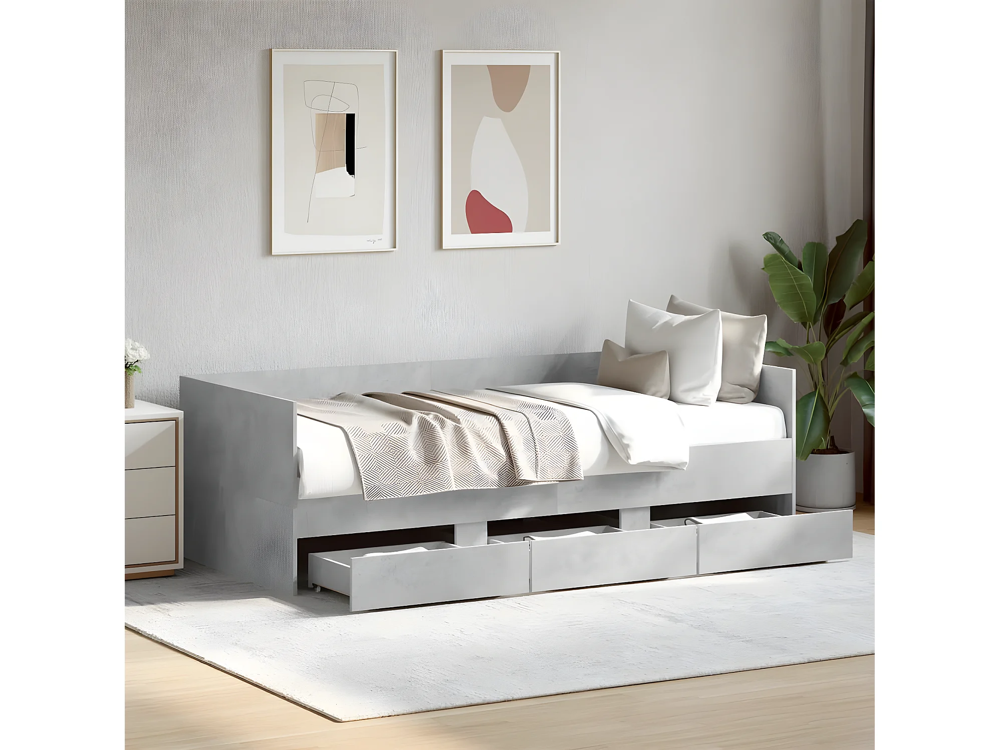 Lit de jour et tiroirs gris béton 75x190 cm bois d'ingénierie