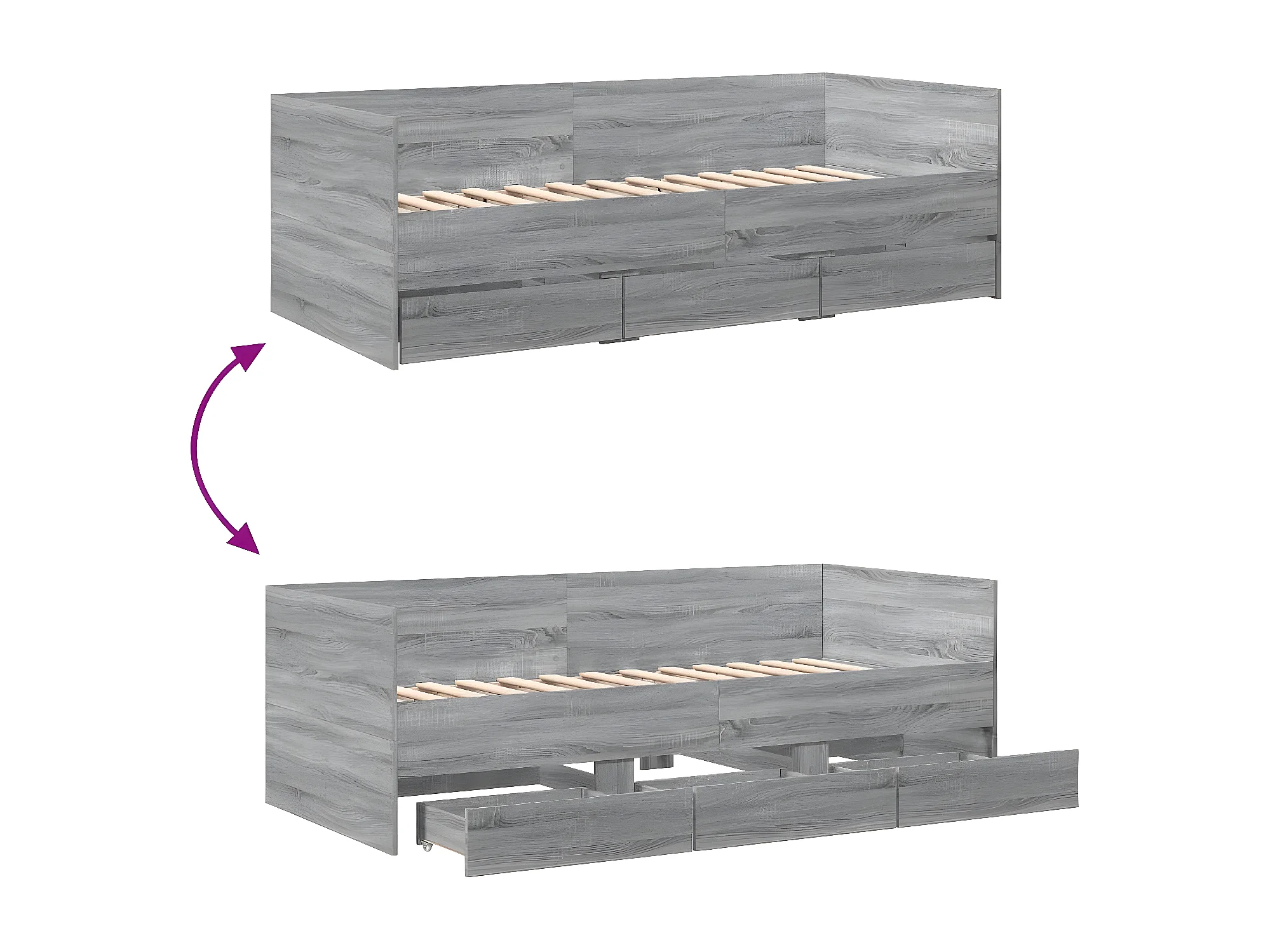 Lit de jour et tiroirs sonoma gris 90x200 cm bois d'ingénierie