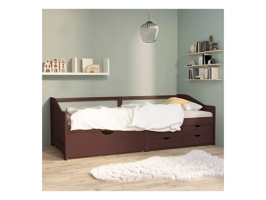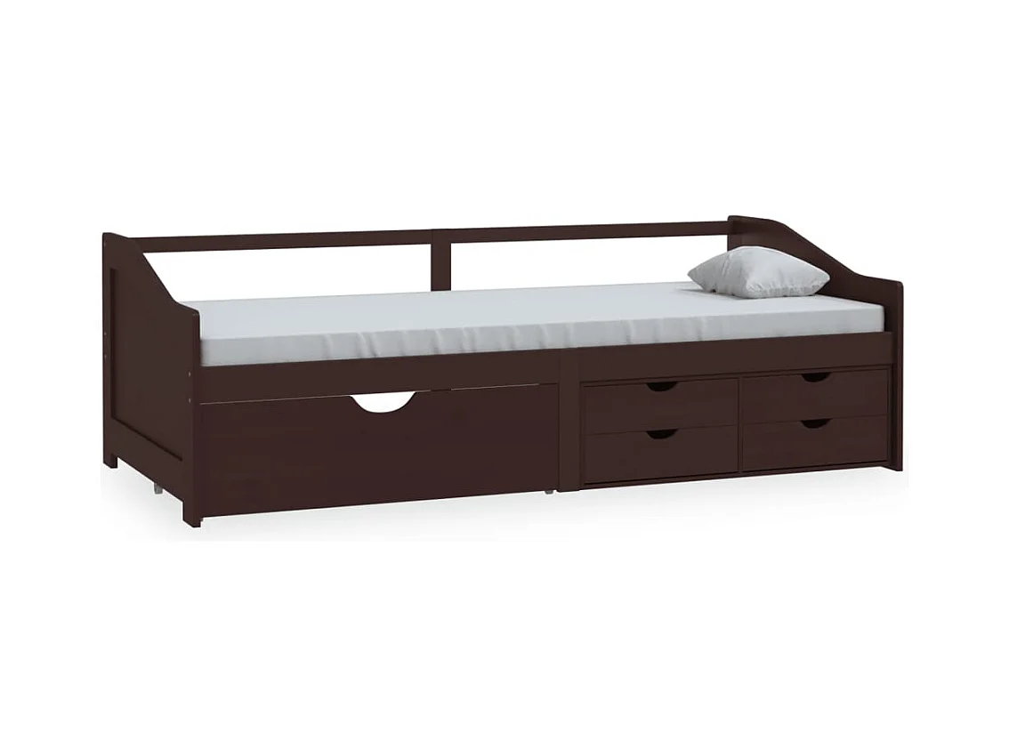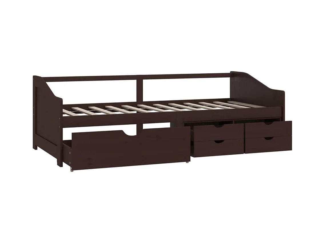 Lit de repos 3 places à tiroirs Marron foncé Pin 90x200 cm