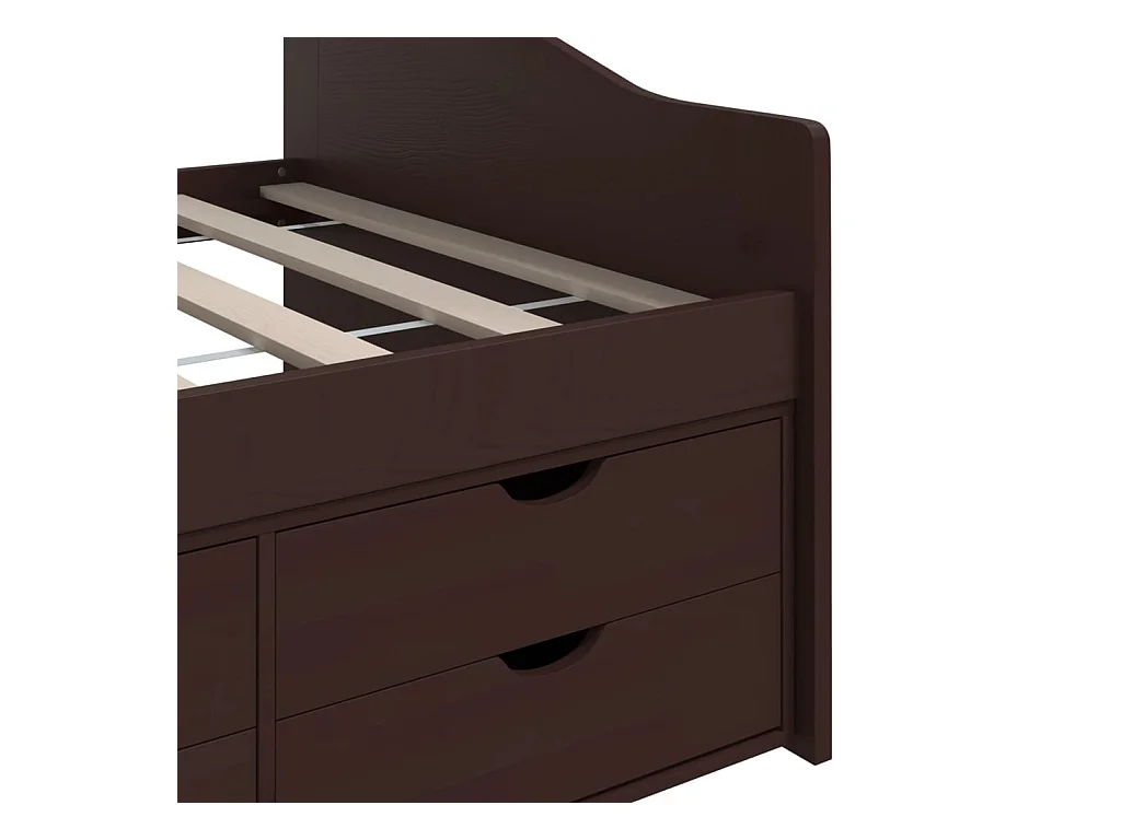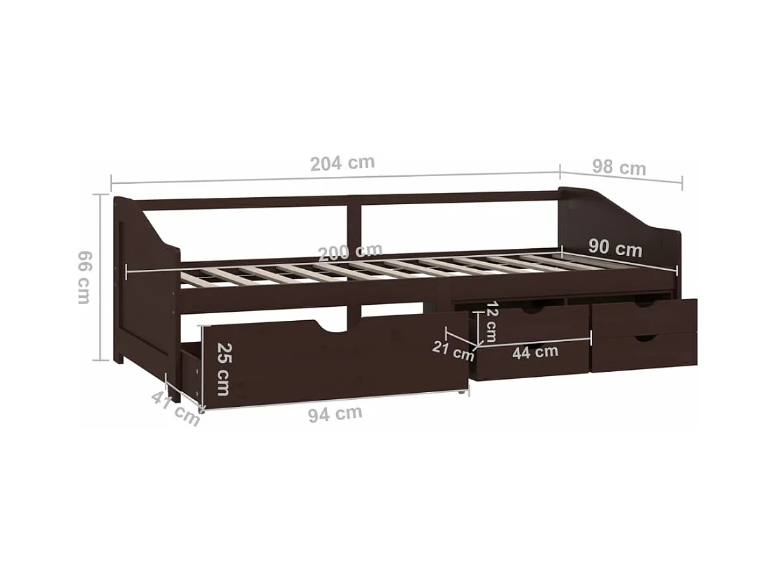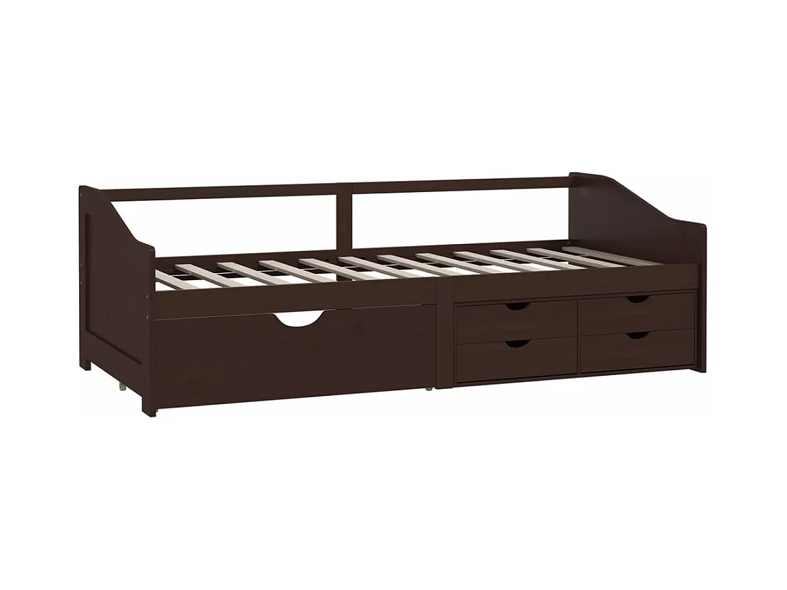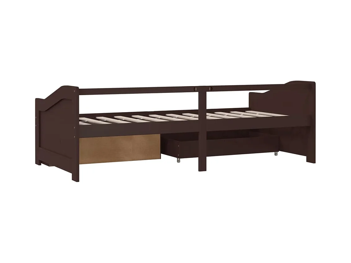 Lit de repos 3 places à tiroirs Marron foncé Pin 90x200 cm