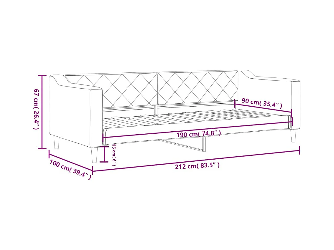 Lit de repos sans matelas gris foncé 90x190 cm tissu