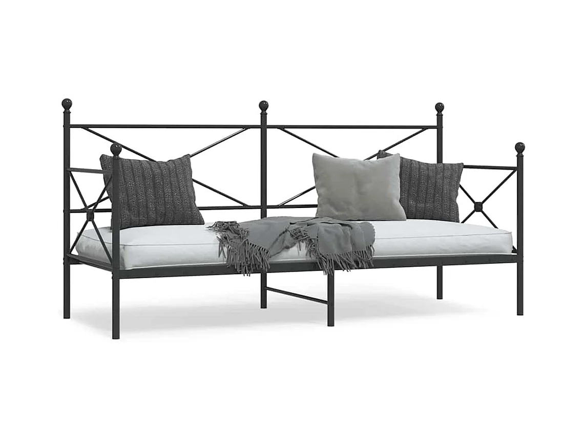 Lit-90x200 cm métal avec tête de lit/pied de lit noir EGGB61999