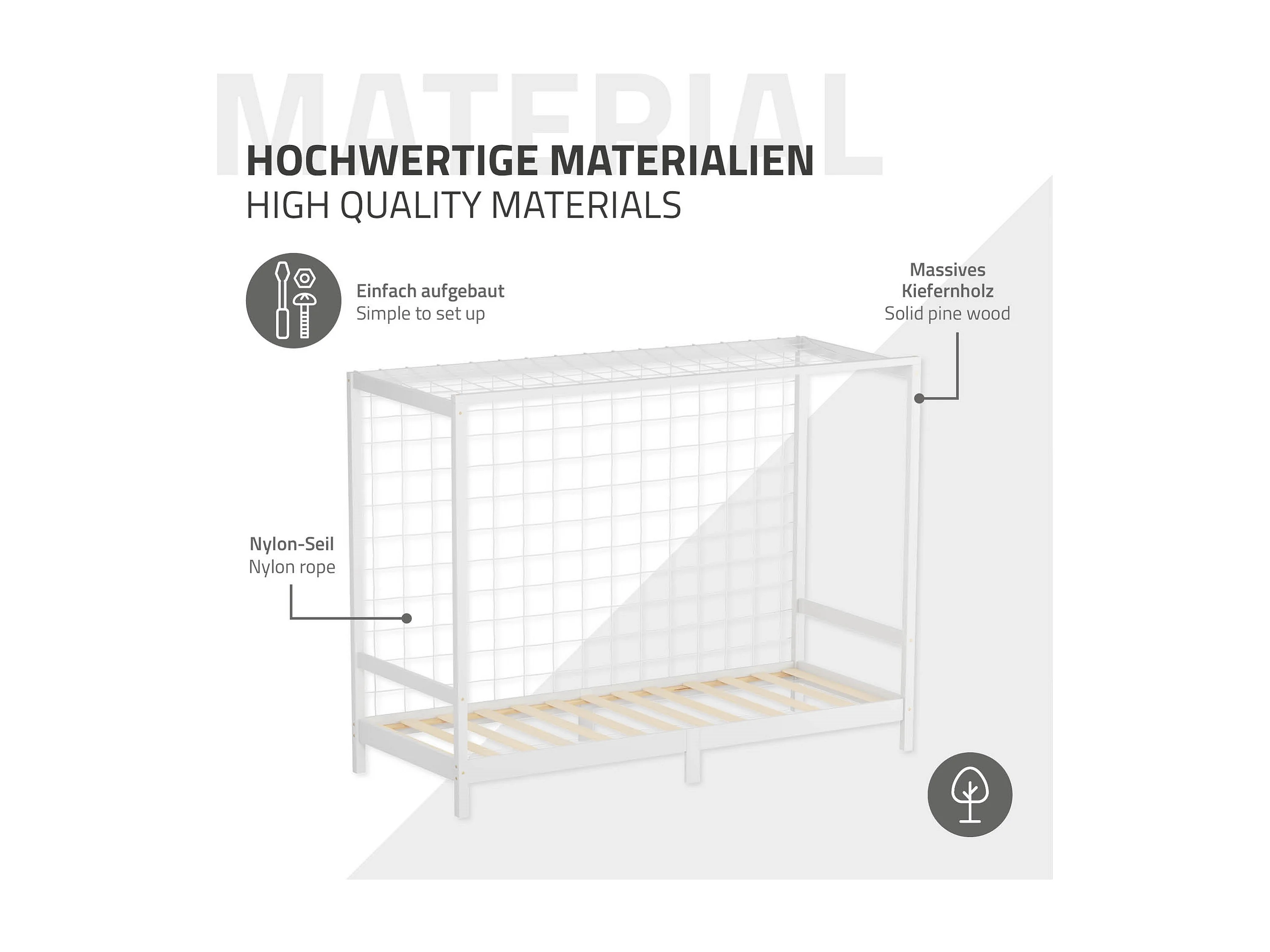 Lit d'enfant 90x200 cm avec matelas H10 cm en mousse cadre blanc en bois design football pin massif robuste avec sommier à lattes et filet de but