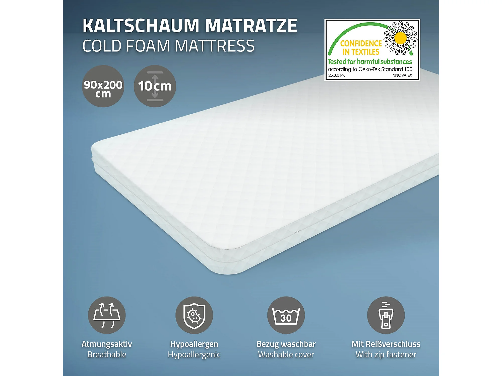 Lit d'enfant 90x200 cm avec matelas H10 cm en mousse cadre naturel en bois design football pin massif robuste avec sommier à lattes et filet de but