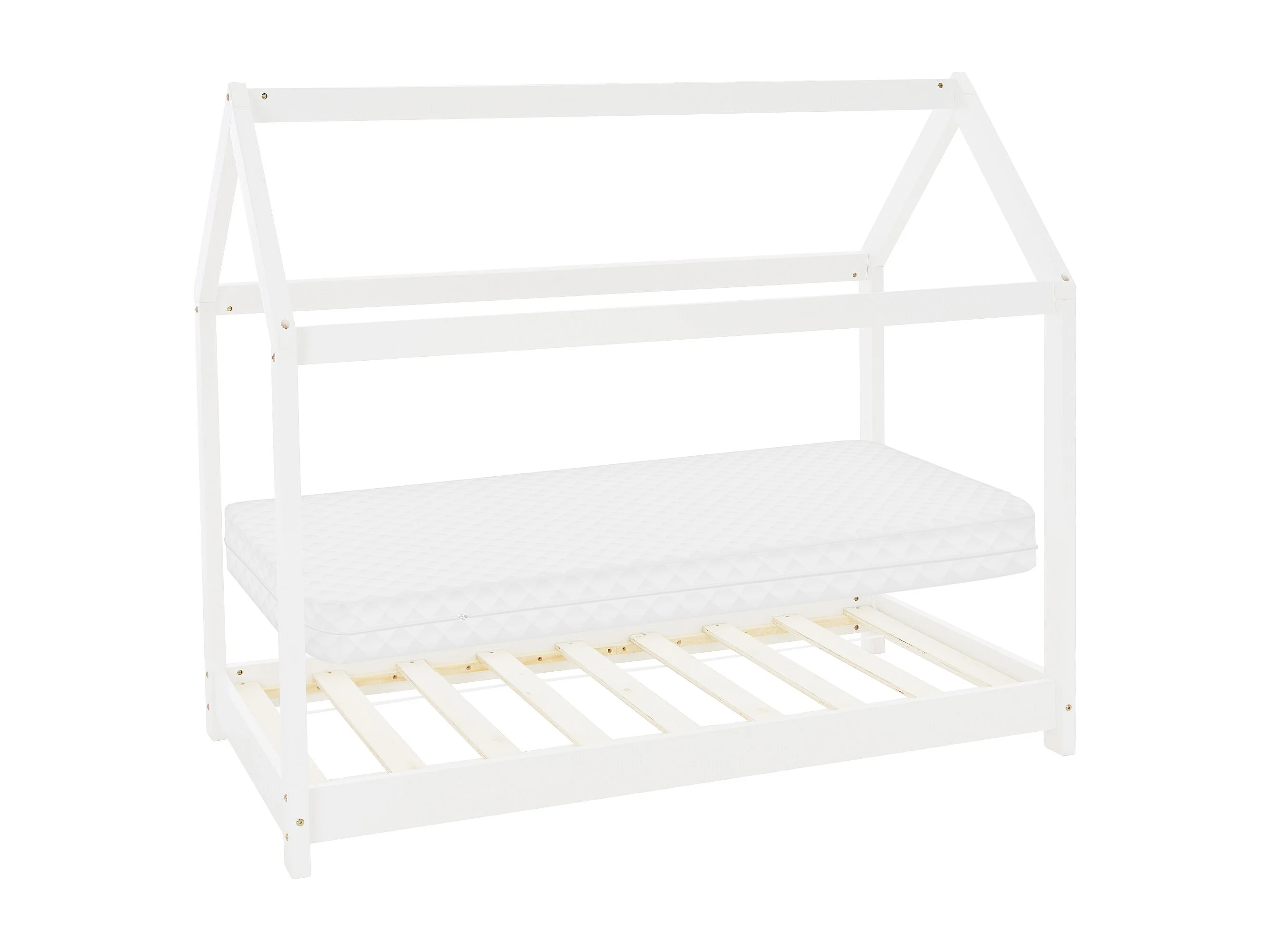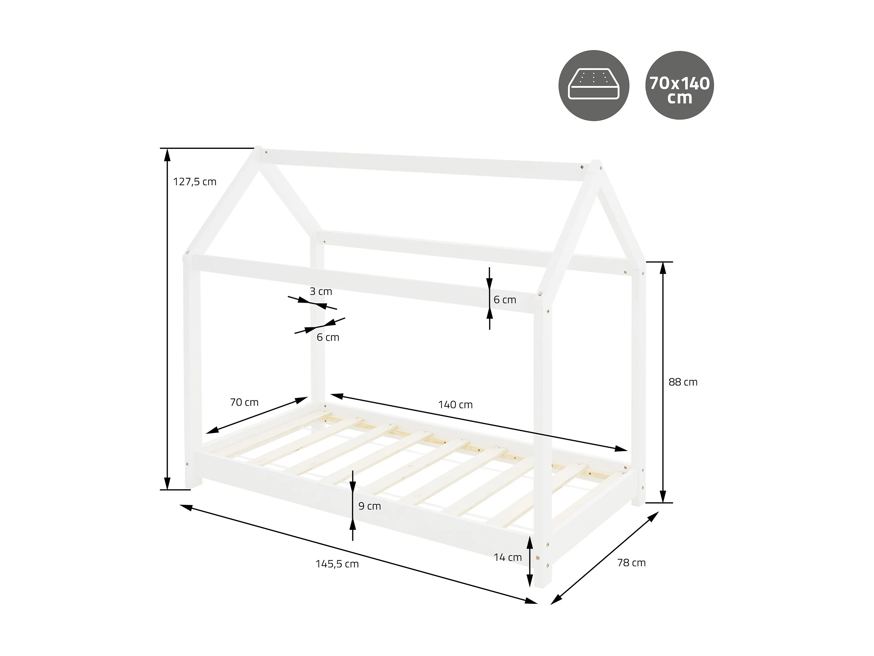 Lit D'enfant Forme Maison Sisimiut Avec Matelas Orthopédique 140X70 Cm Blanc