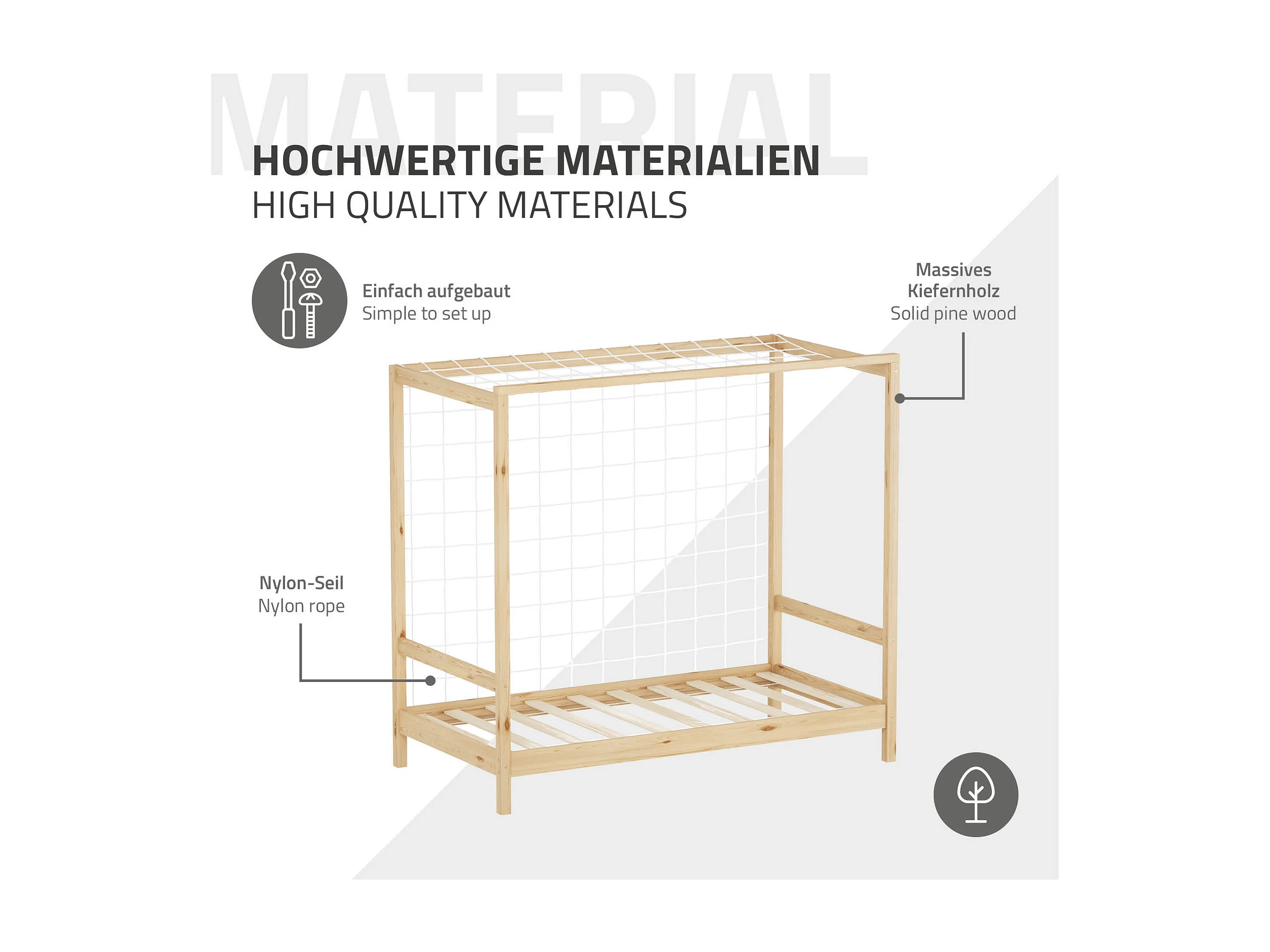 Lit cabane LUSIA 80x160 cm, lit simple 1 place pour bébé ou enfant de type Montessori, en pin massif à la finition naturelle