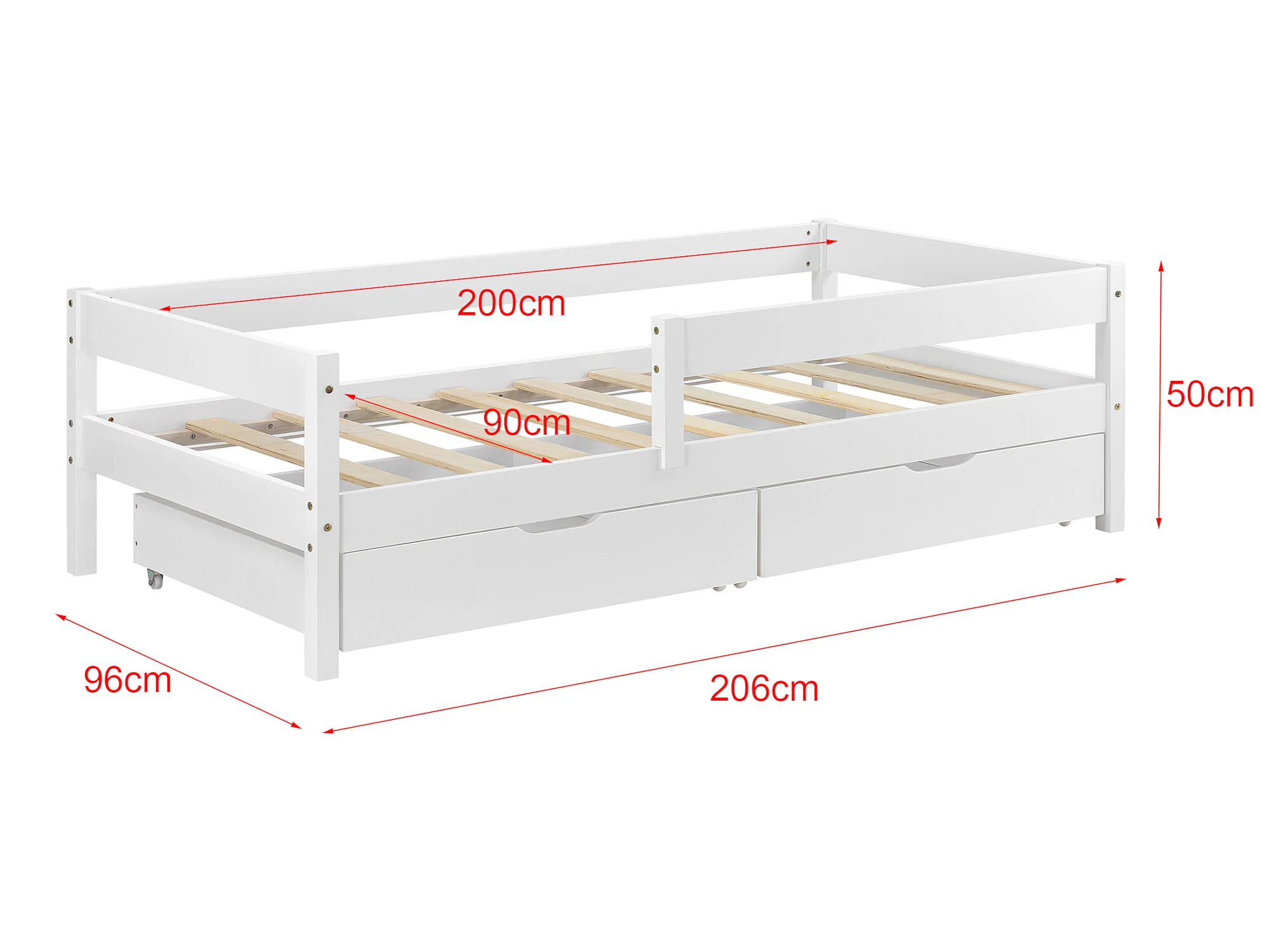 Lit D'enfant Design Avec 2 Tiroirs Borgarnes 90 X 200 Cm Blanc [en.casa]