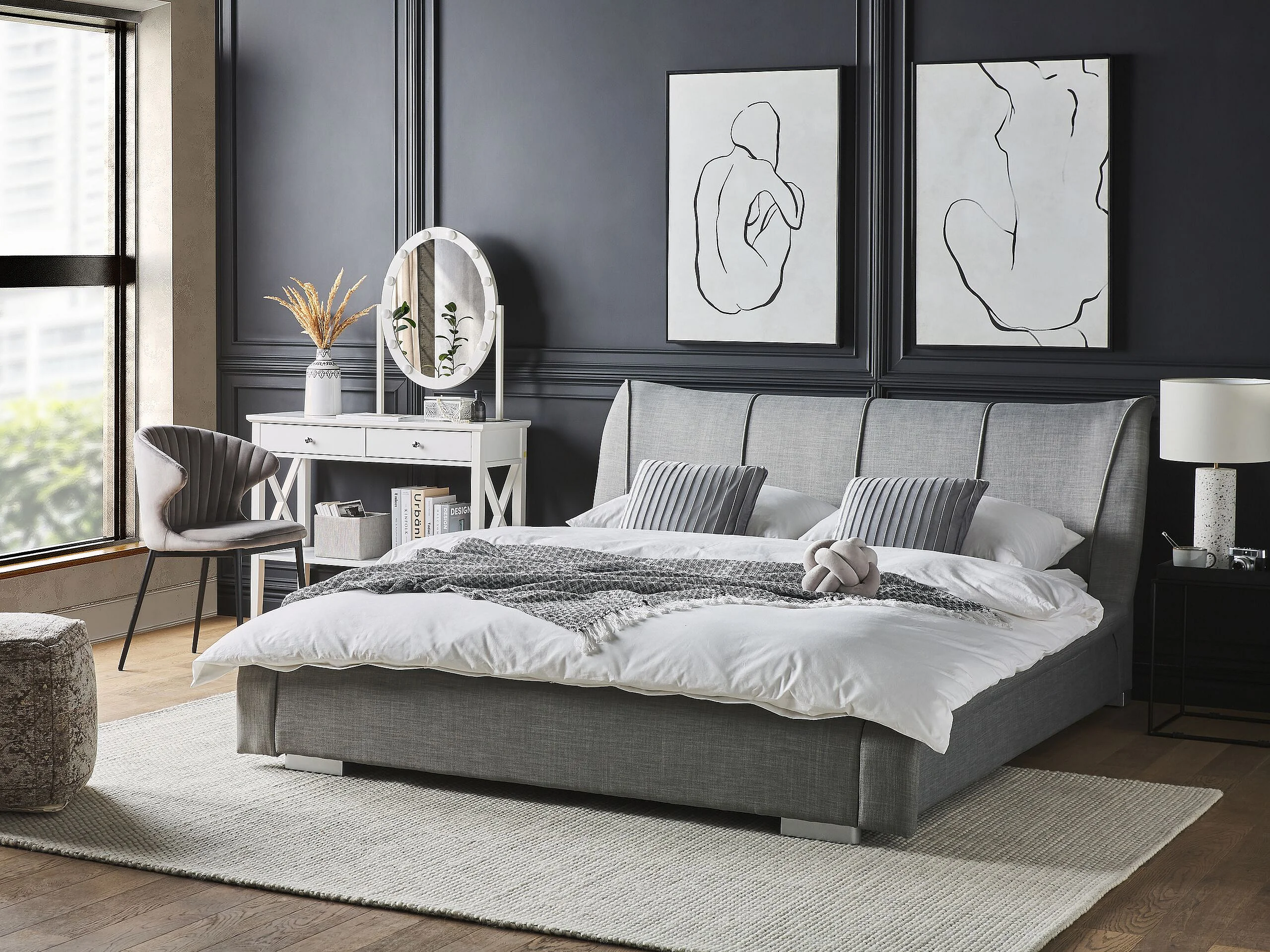 Lit avec sommier Tissu NANTES 180 x 200 cm Gris clair