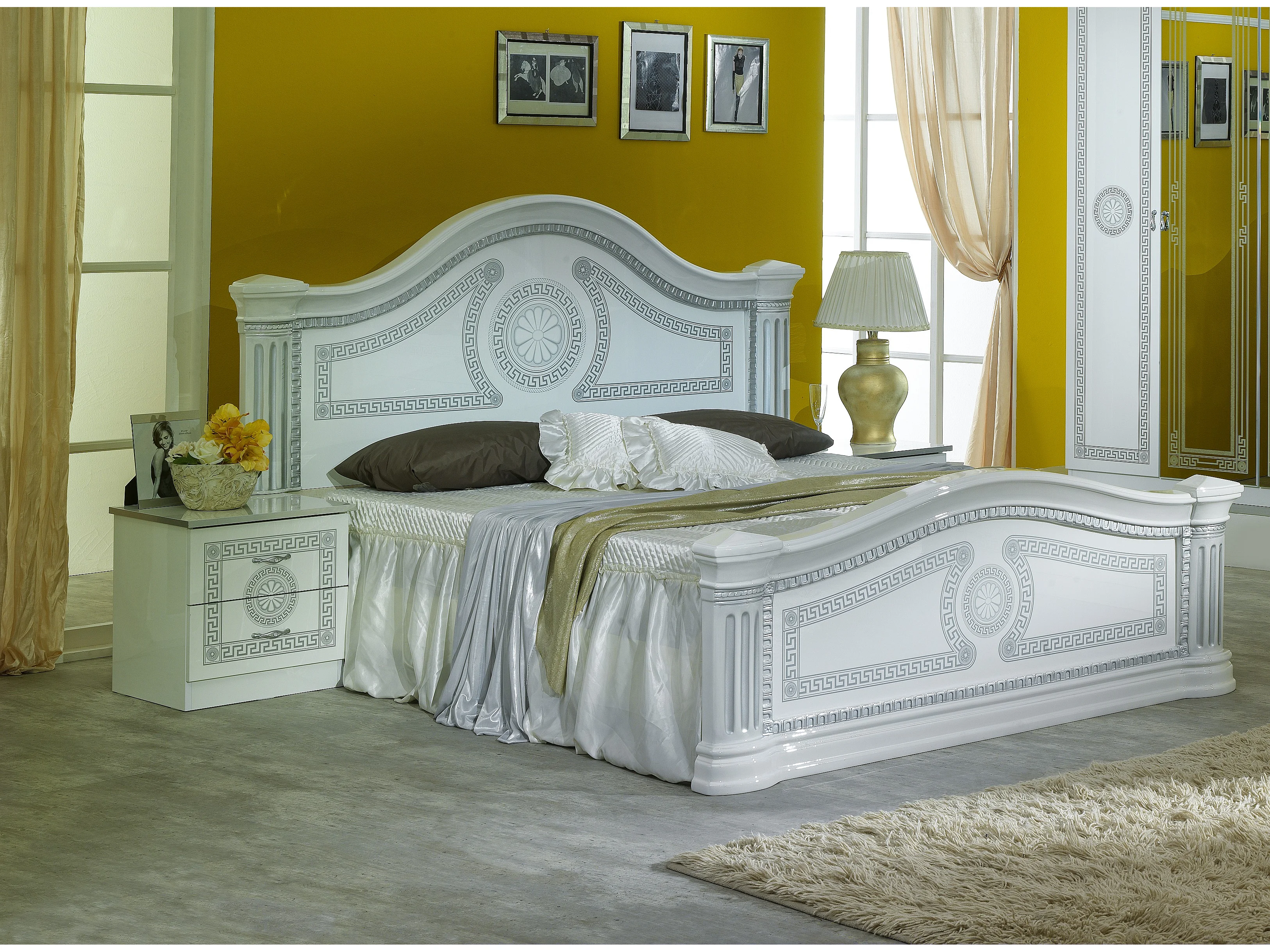 Lit design laqué blanc et gris Savana 160x200